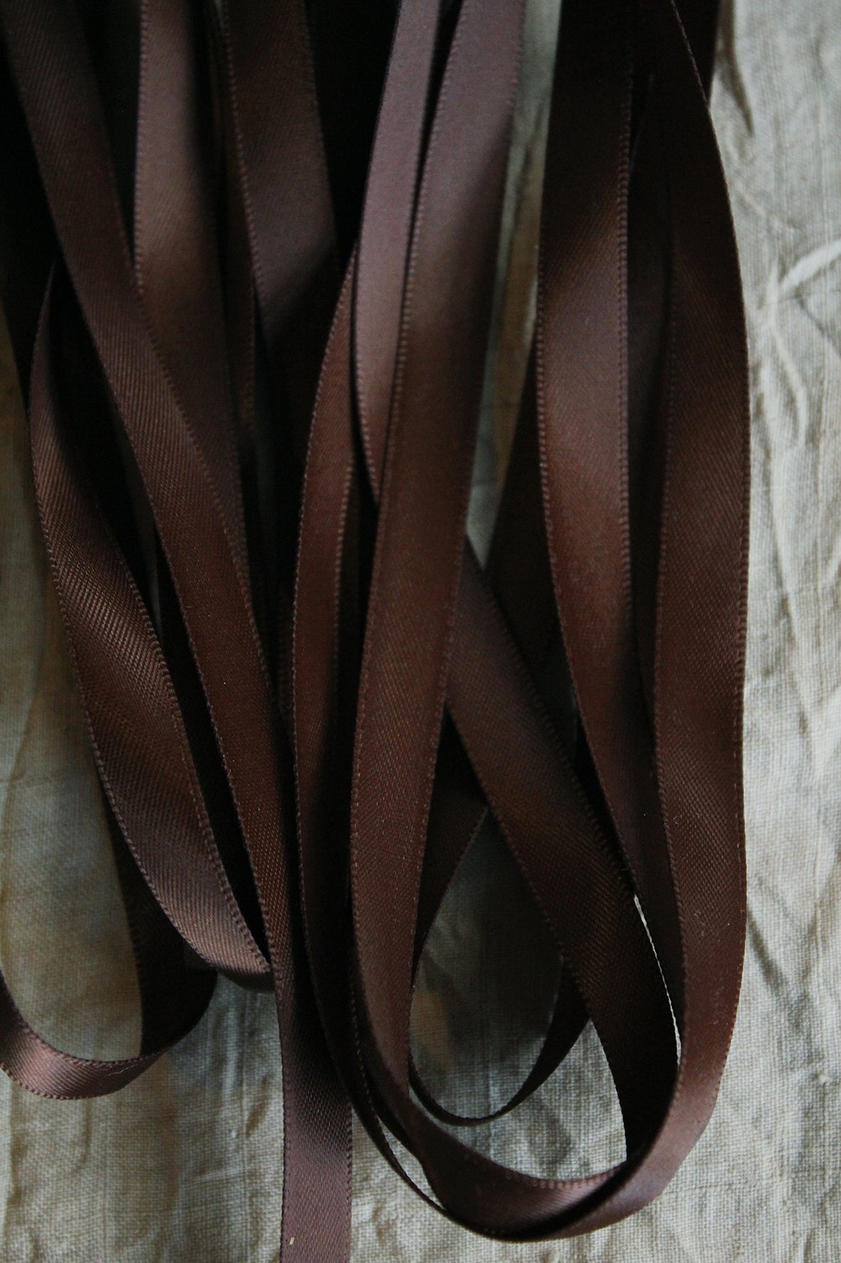A lovely double sided satin ribbon in a beautiful tone of dark oak.