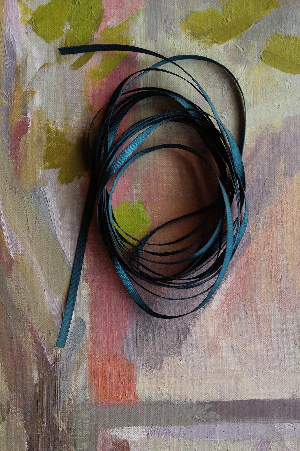 A lovely double sided satin vintage ribbon in a gorgeous peacock blue.