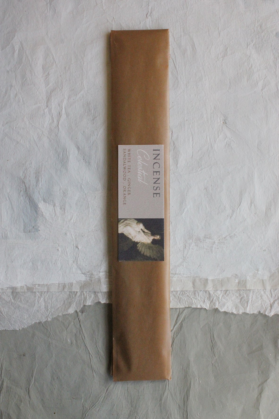 Light the end of the incense, allow the flame to dance for approximately 5-7 seconds, then blow the flame out. What you should have remaining is a smoulder that sustains a gently scented woody smoke. You can stand the incense in a specially designed holder, or place in a small found/vintage pot but remember to place the pot on a small plate or tile to catch the ash as it burns. At home I use an old earthenware pot that rests on a Victorian tile.