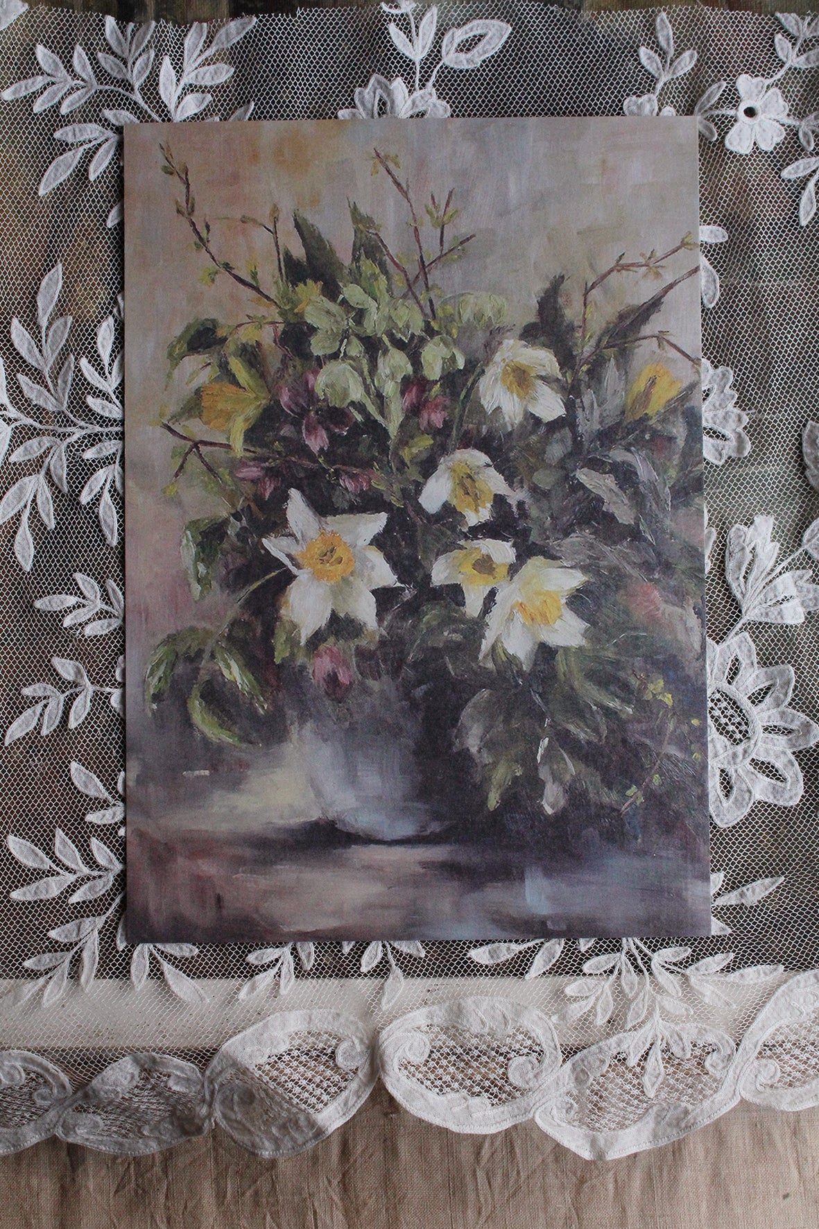 To enjoy in your home like a miniature painting.A reproduction of a painting that visited The Linen Garden.