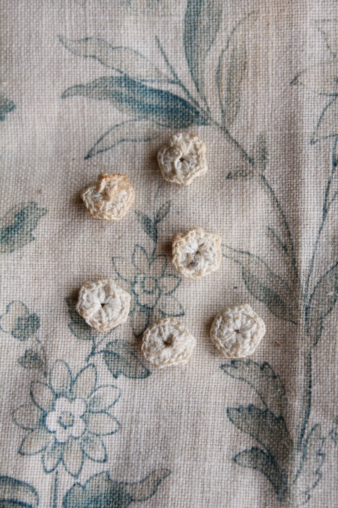 Beautiful Rare Tiny Hand Made Linen Flower Buttons