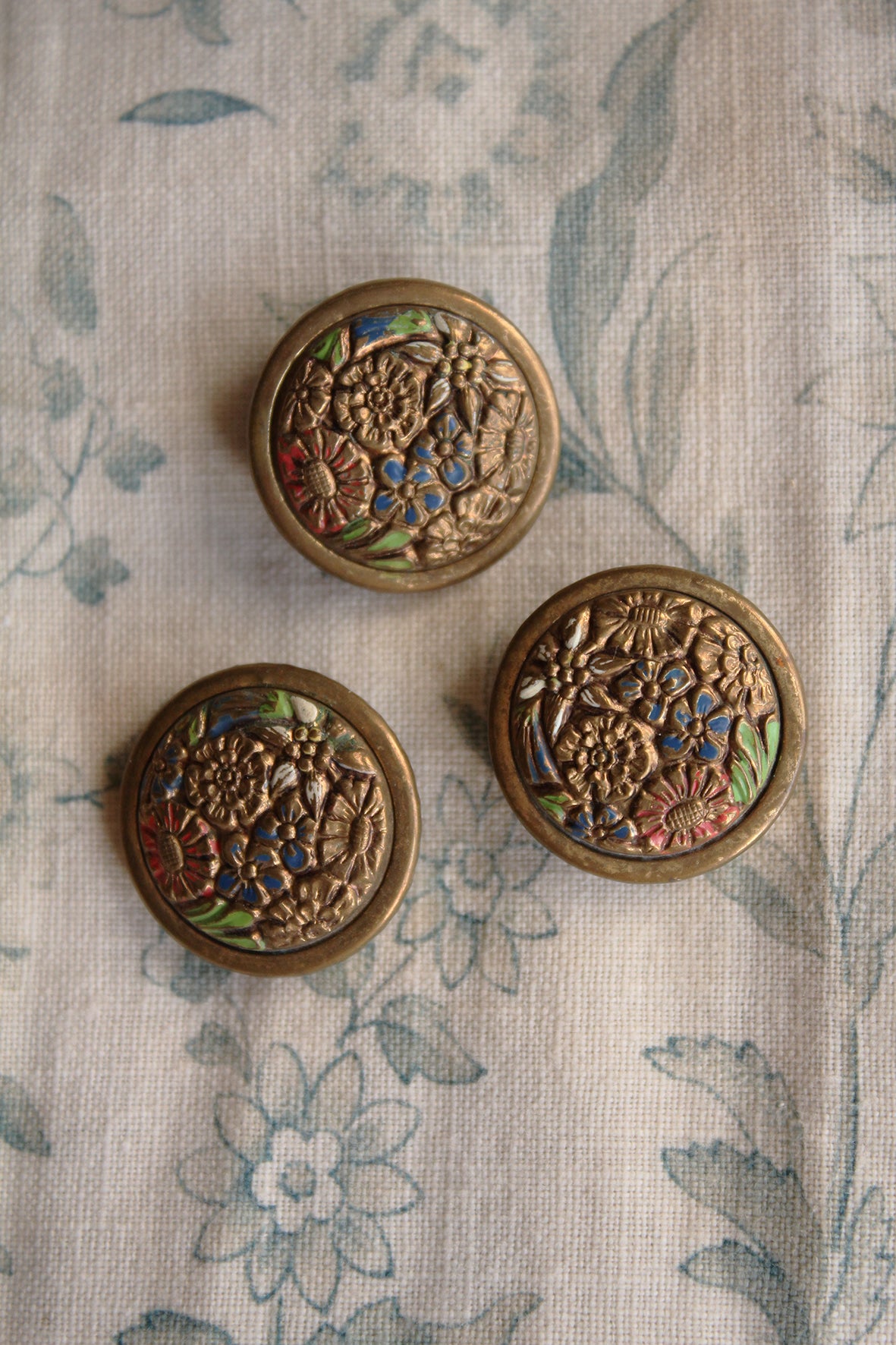 Hand Painted Old Brass Pressed Floral Buttons