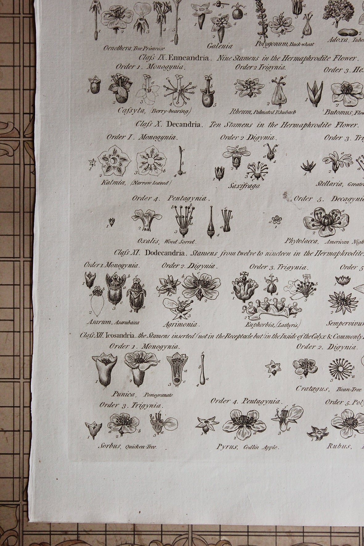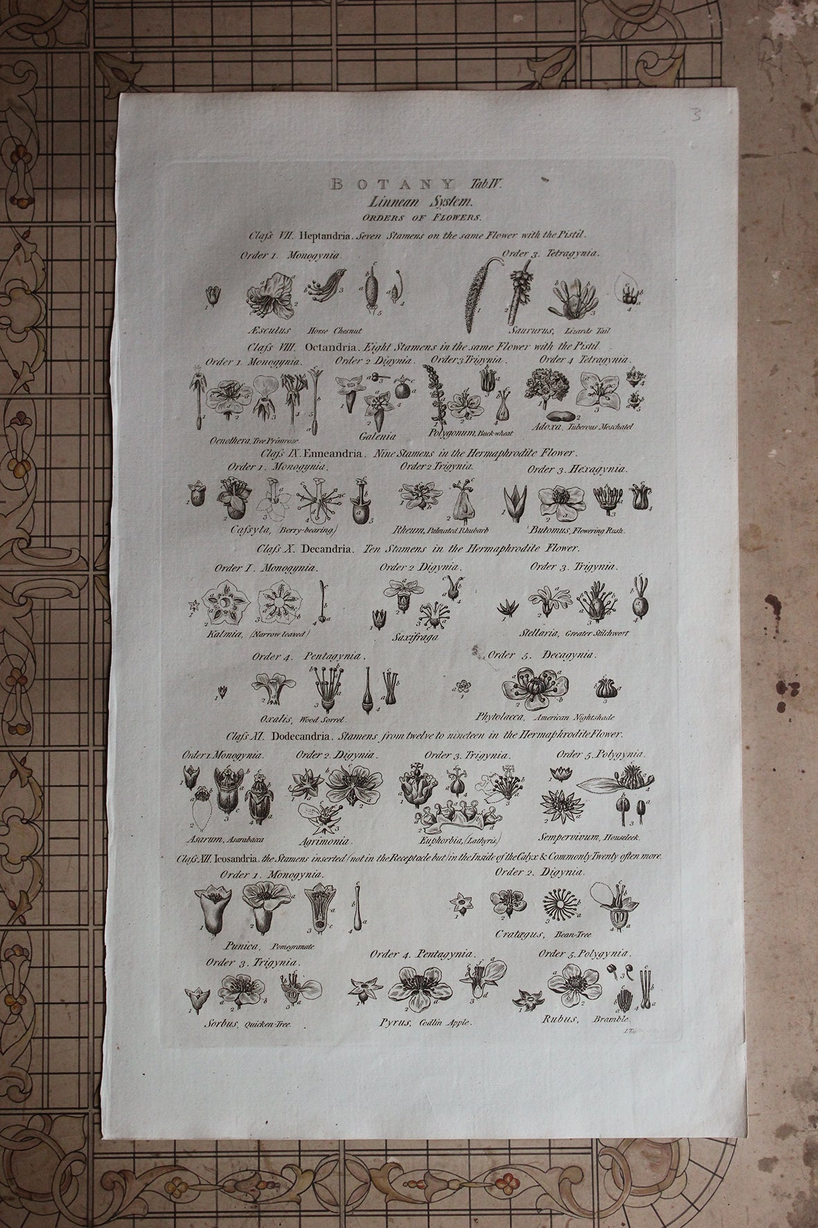Antique Copperplate Printed in 1787 - Botany Tab IV - Orders of Flowers