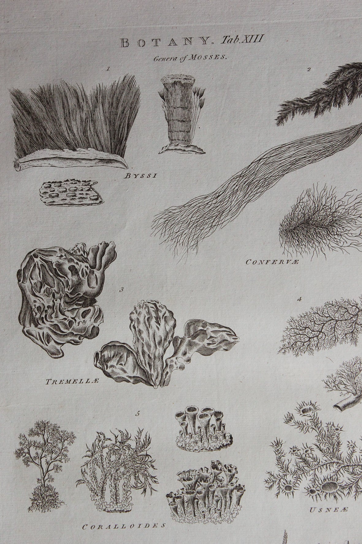 Antique Copperplate Printed in 1787 - Botany Tab VIII - Genera of Mosses