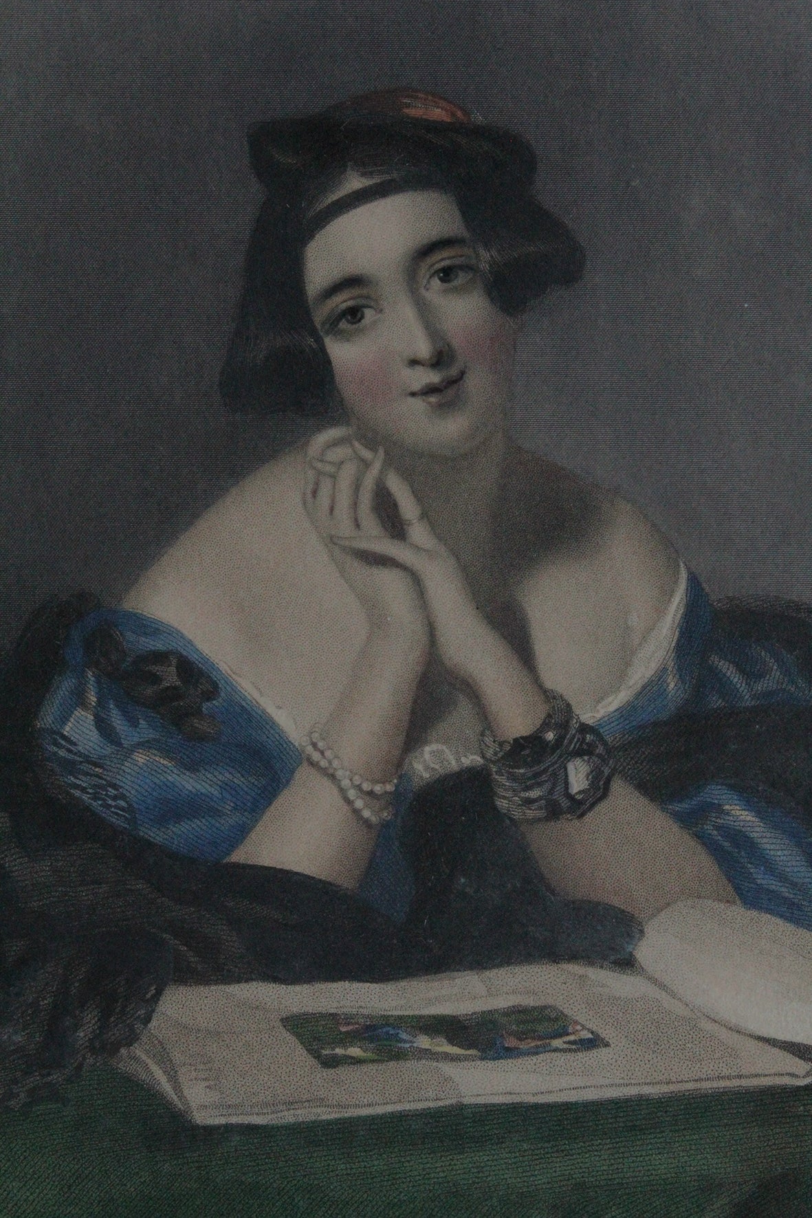 Here is a beautiful etched portrait that has been coloured with washes by hand.