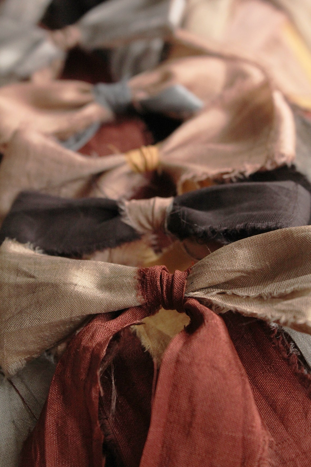 It is that time of year where I stand for hours on end and prep all the vintage and antique silk sari ribbon that has arrived over the last couple of months. This silk ribbon is so lovely to use especially at this time of year. You can use to decorate presents, add to wreaths and swags, make bows, or use as lengths to add to your decorations for the tree. Sometimes changing the hangers to simple glass baubles in complimentary or contrasting colours can change the look of the decoration. It is also lovely to just have in your craft room to use within your own projects.