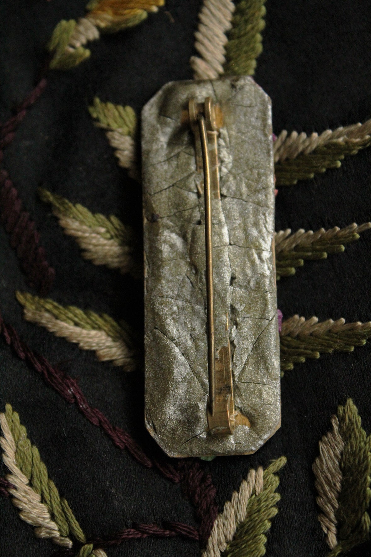 An old hand made artisan brooch detailed with the tiniest of flowers.  The central flower has a broken petal.