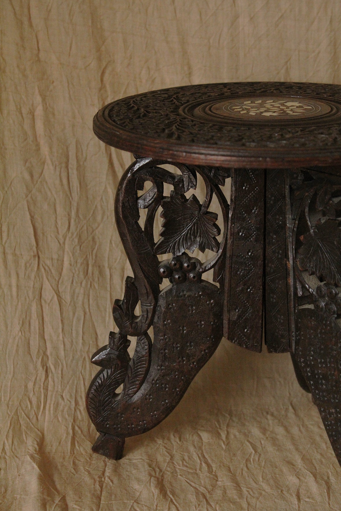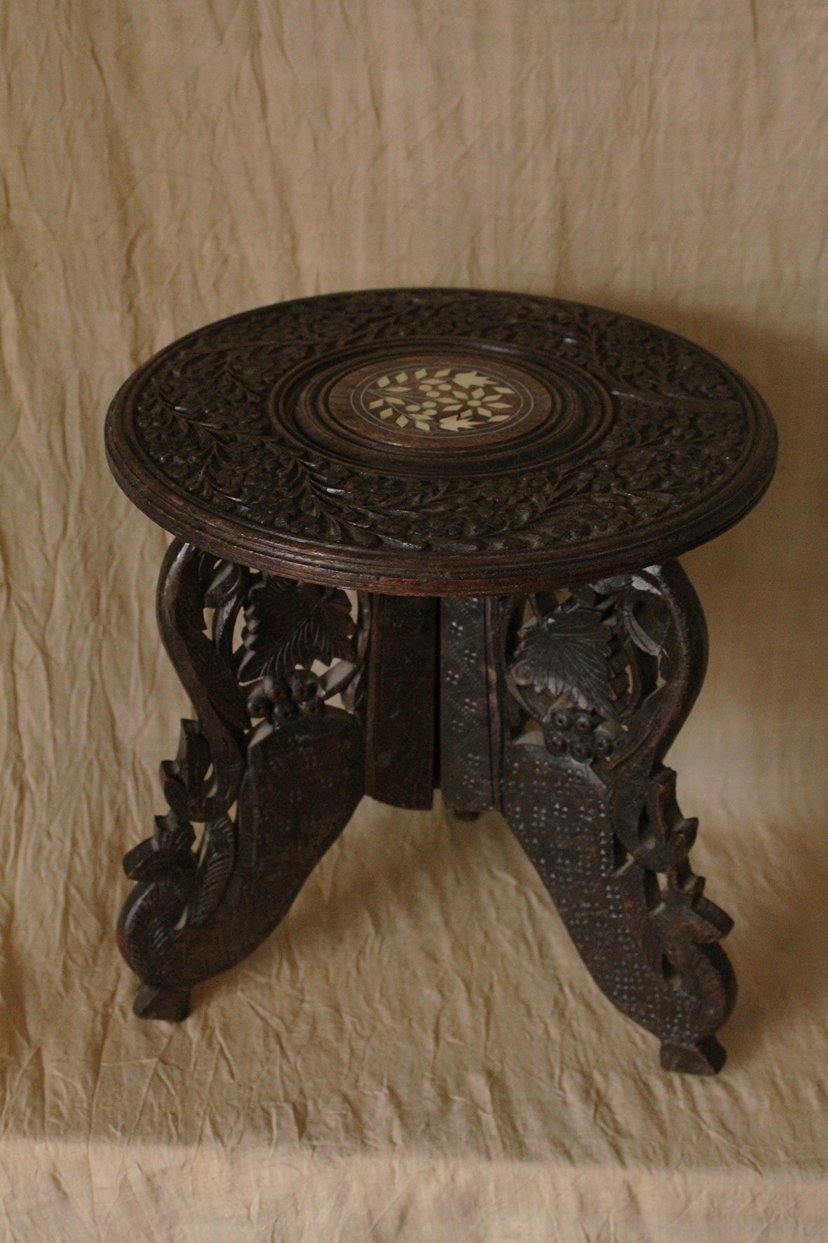 A Wonderful Old Portable Carved Indian Miniature Table