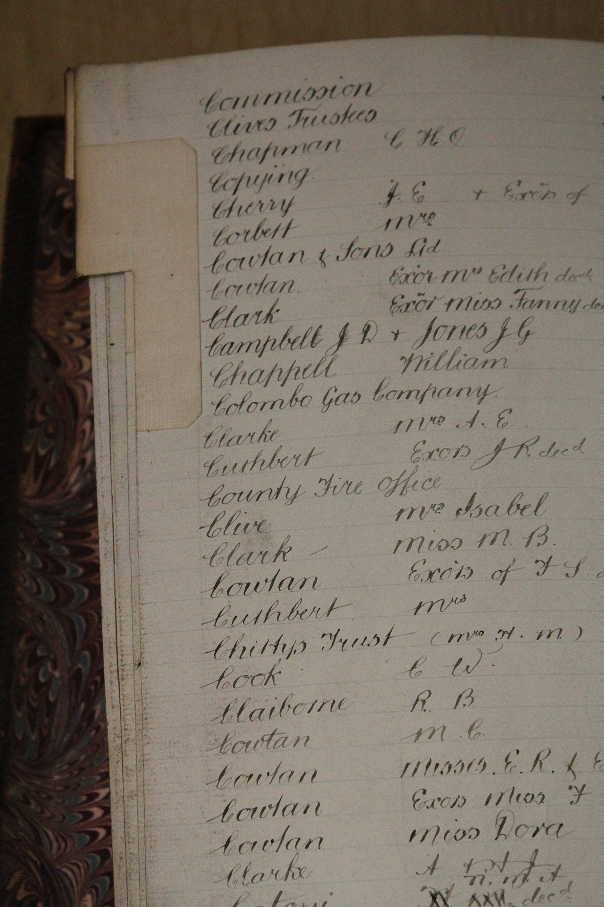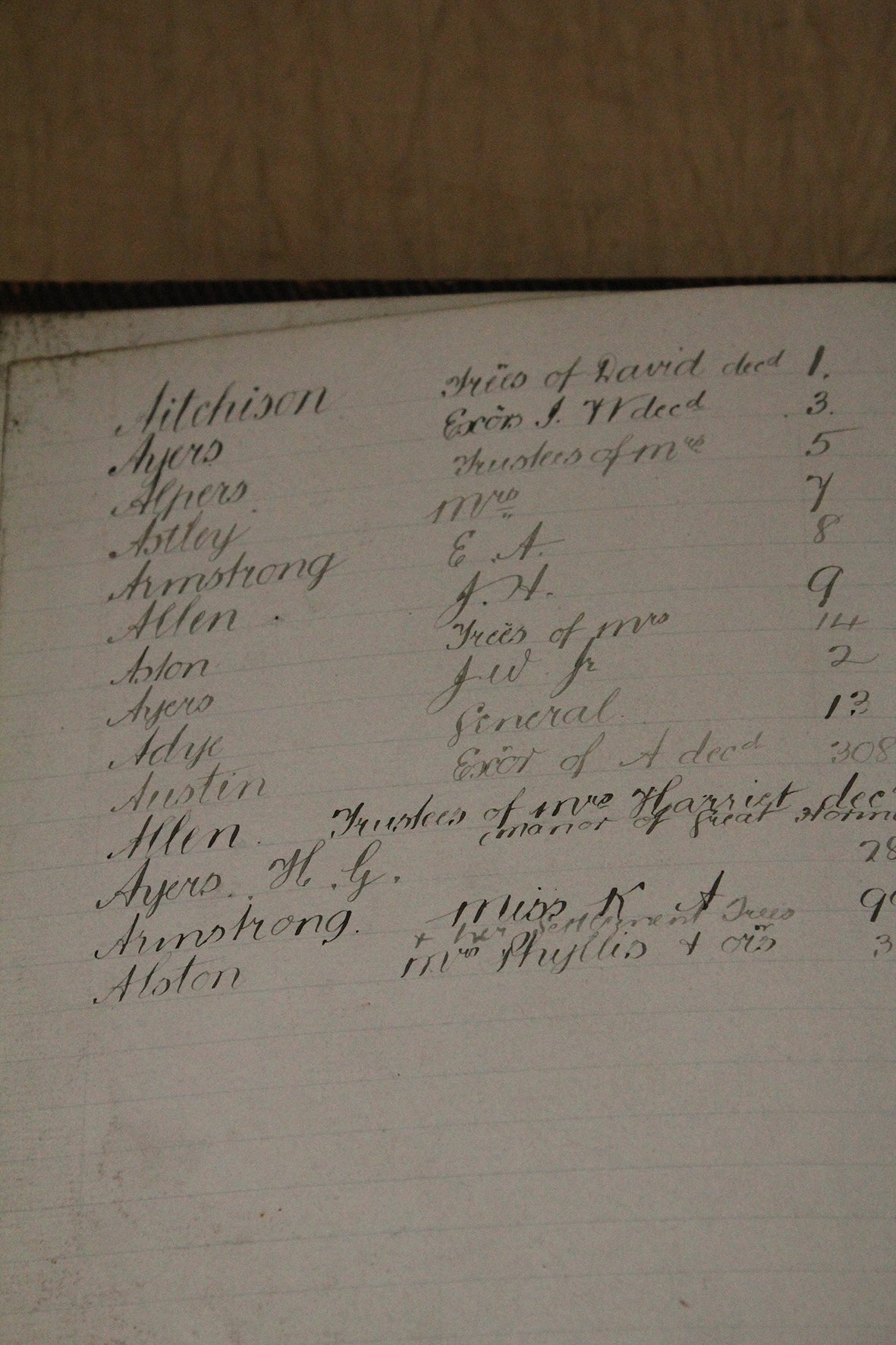 This is another obsession of mine. Collecting old ledgers and I am slowly letting some of them go to new homes over the year. This is the first. It is a large and heavy book (weighing 6.5kg) so lots of hand written pages. It is an accounts book of clients from a solicitors detailing trustees information and financial affairs. Dates 1916-1920, Beautiful hand written inked pages