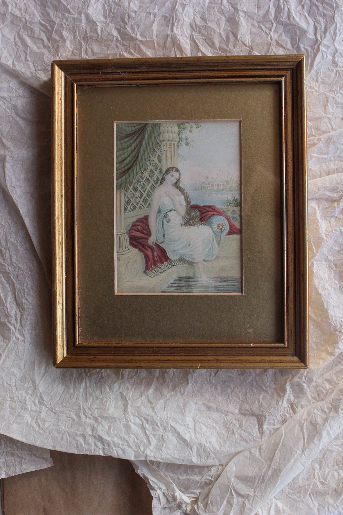 An Old Framed Hand Coloured Baxter Print