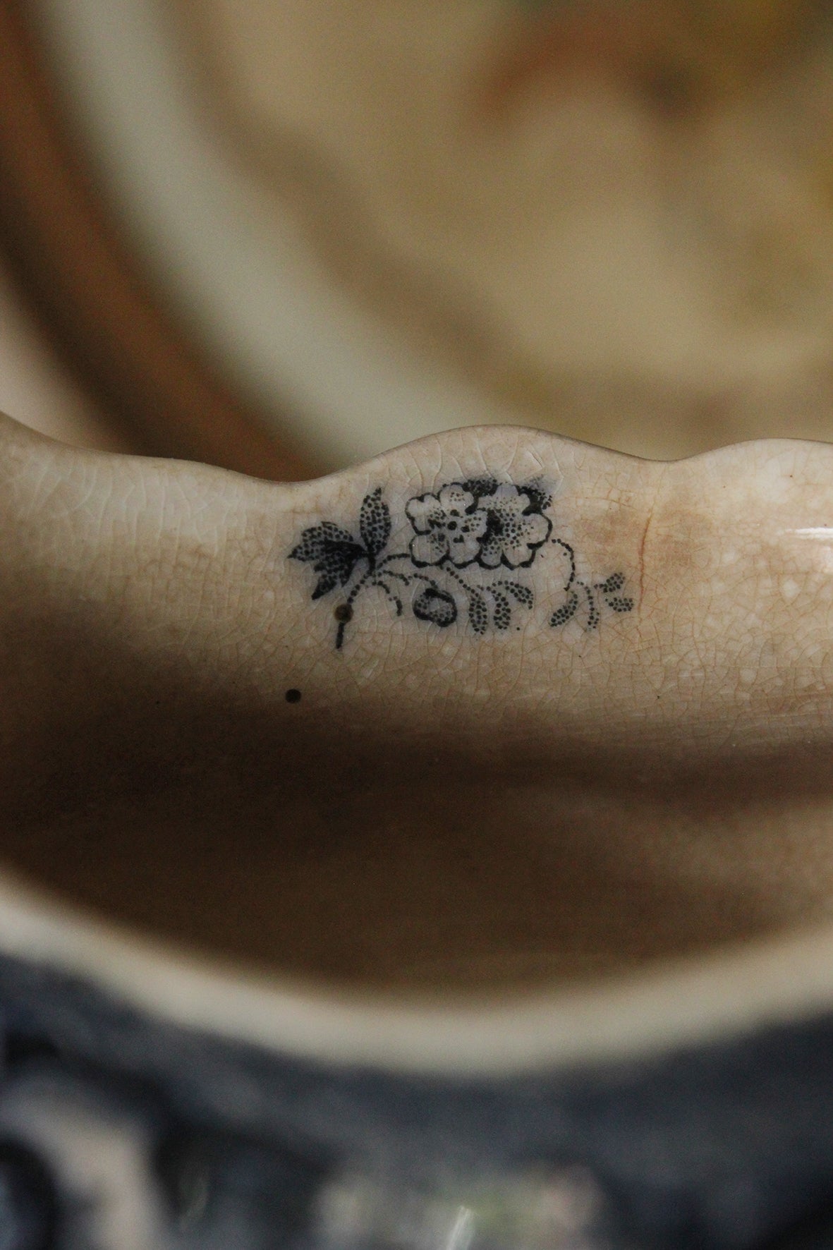 There is only time that can produce a surface so beautiful where the transfer swims with the base glaze, a glaze that is worn and that holds tones only created by domestic use. I have taken lots of photographs so you can see how beautiful this piece is.