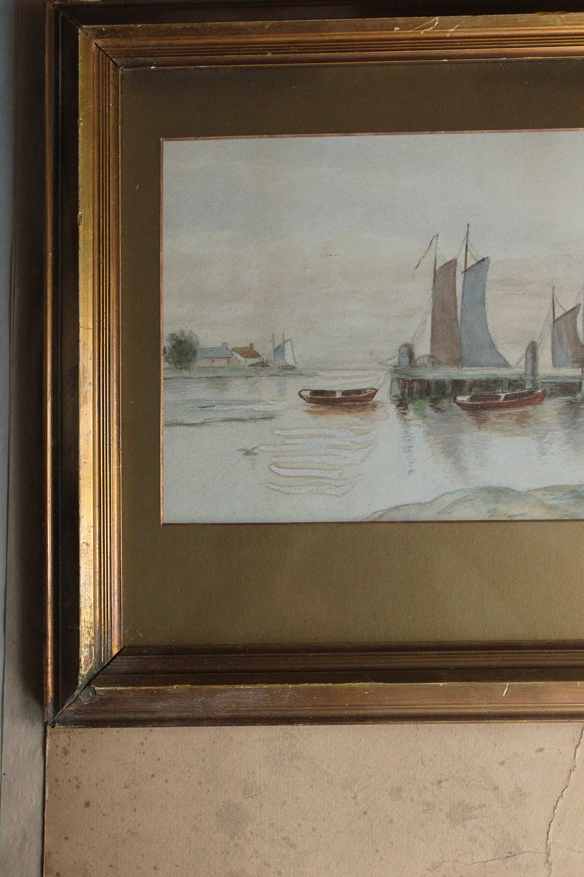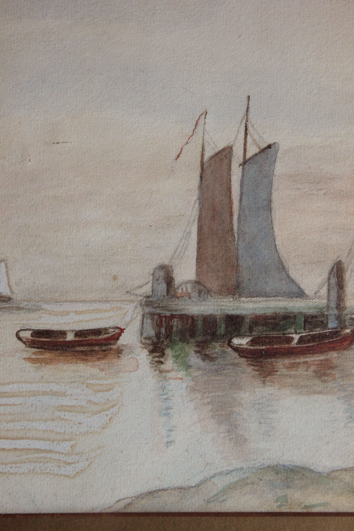 Old Framed Edwardian Watercolour - Resting Fishing Boats