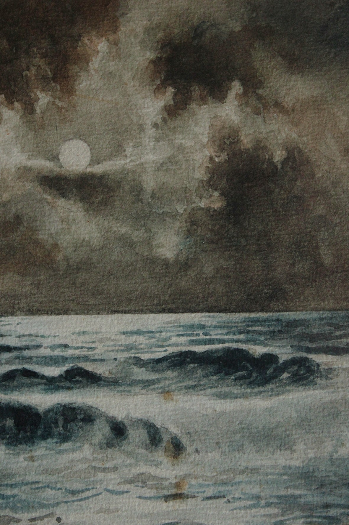 I can't begin to tell you how beautiful this watercolour is to view. The technique of capturing the moonlight through broken cloud down onto the waves is just exquisite. I am also selling the sister painting to this too.