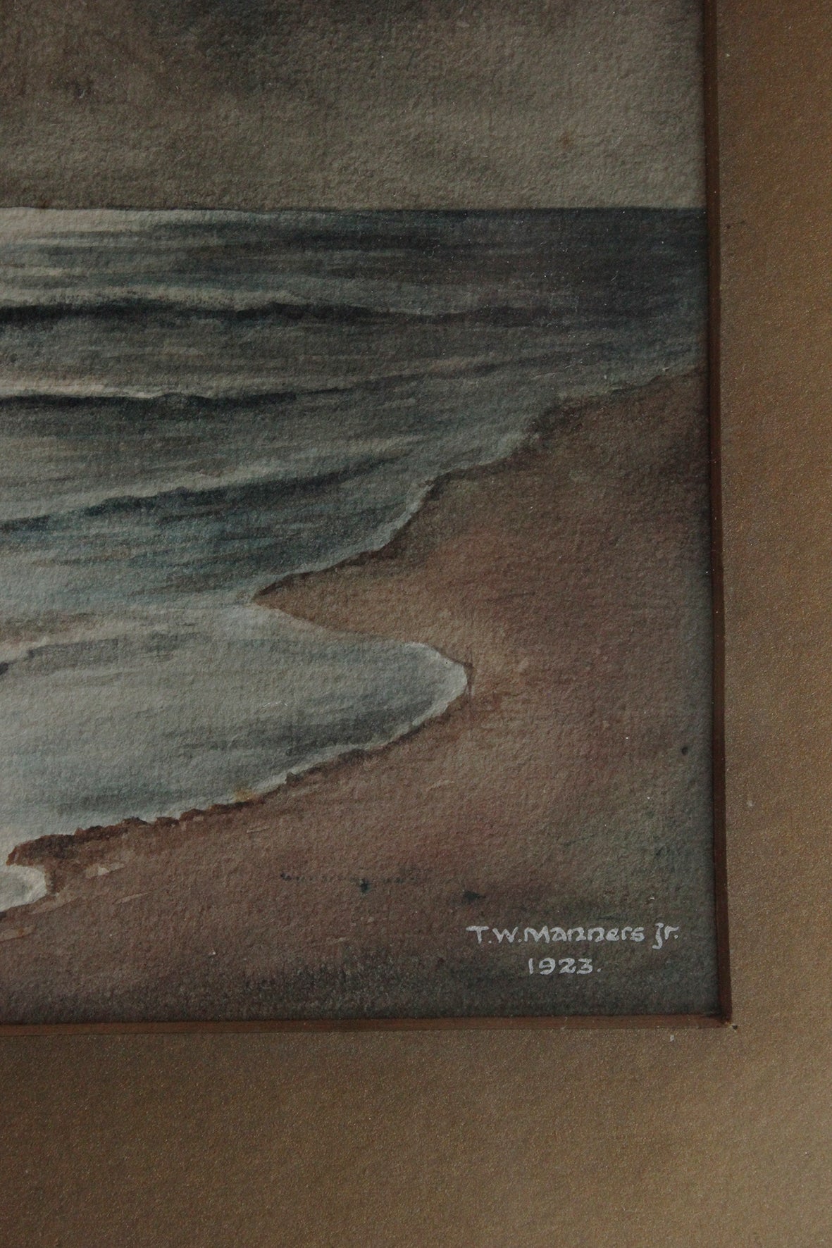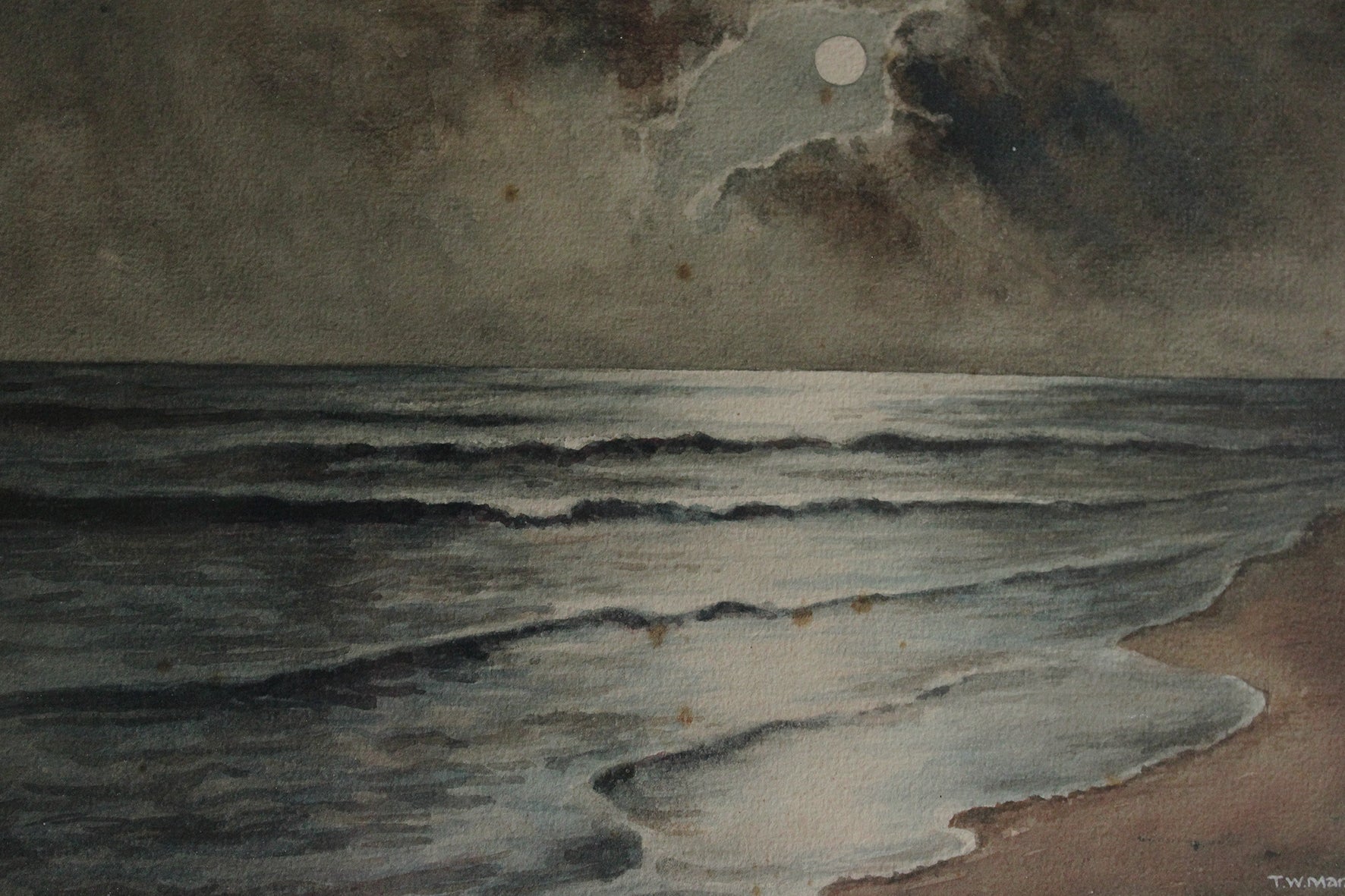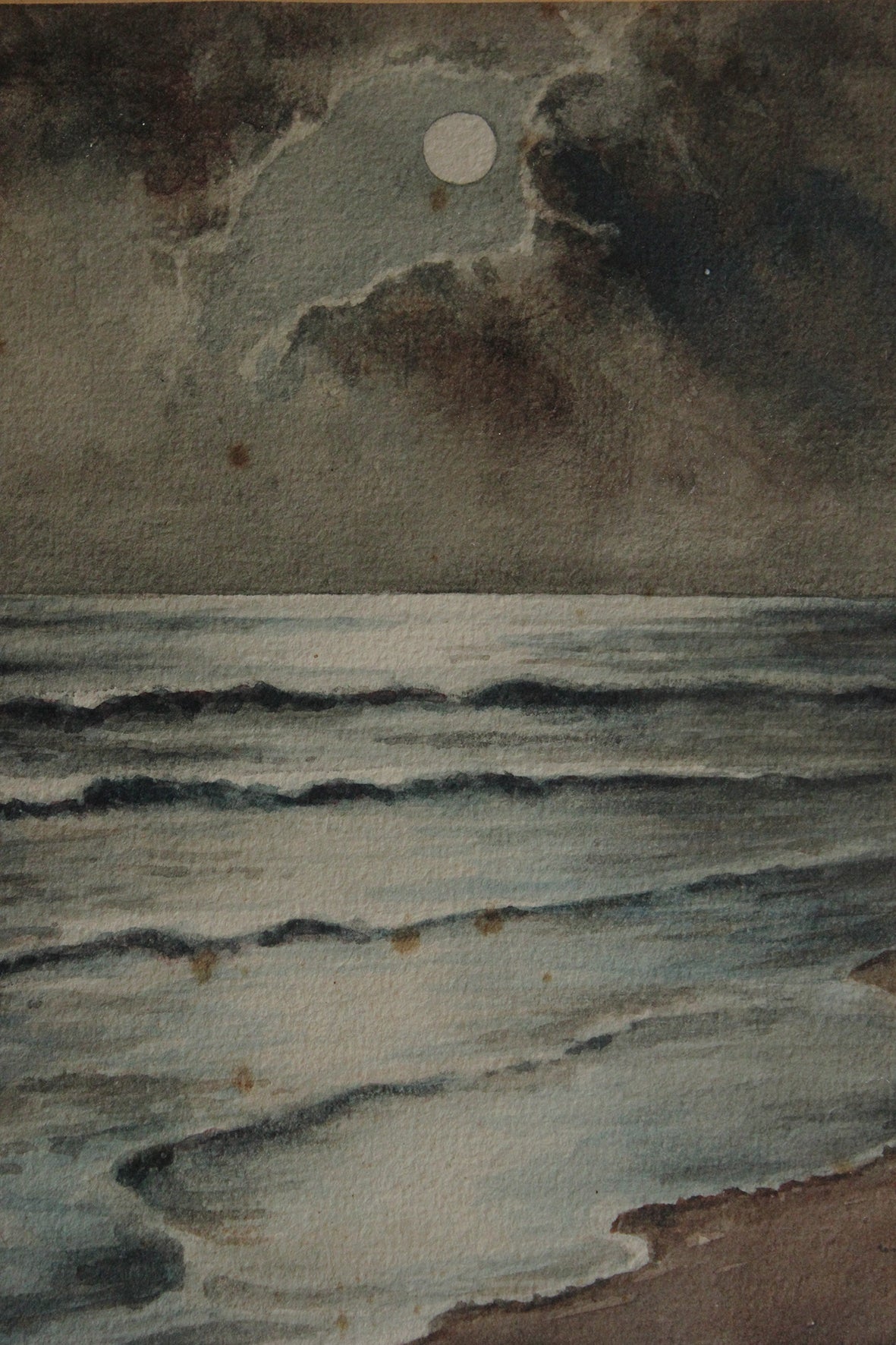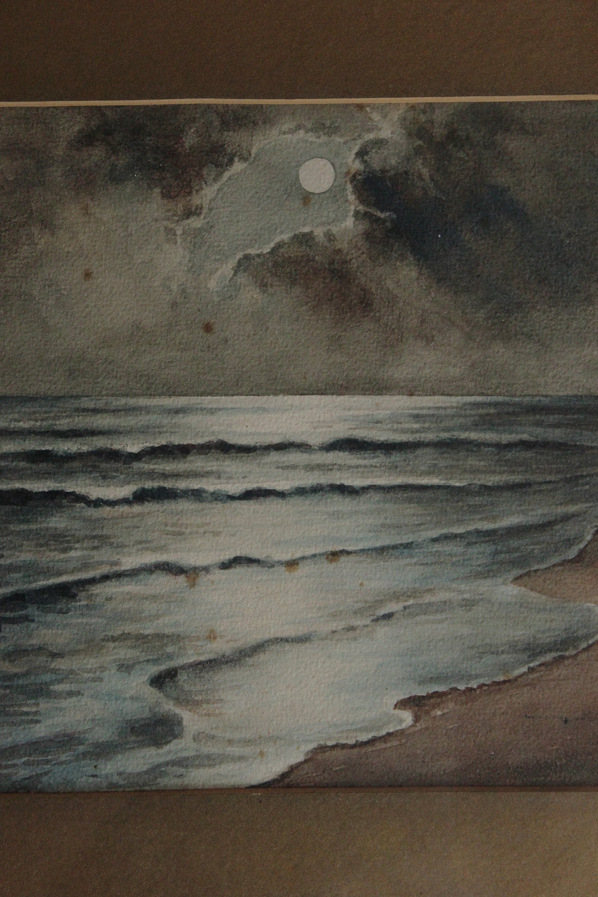 Old Framed Twenties Watercolour - A Moonlit Shore - Painting 1
