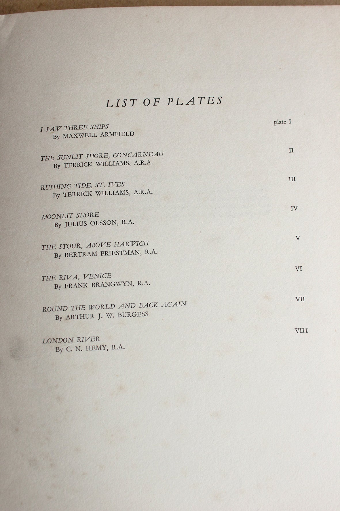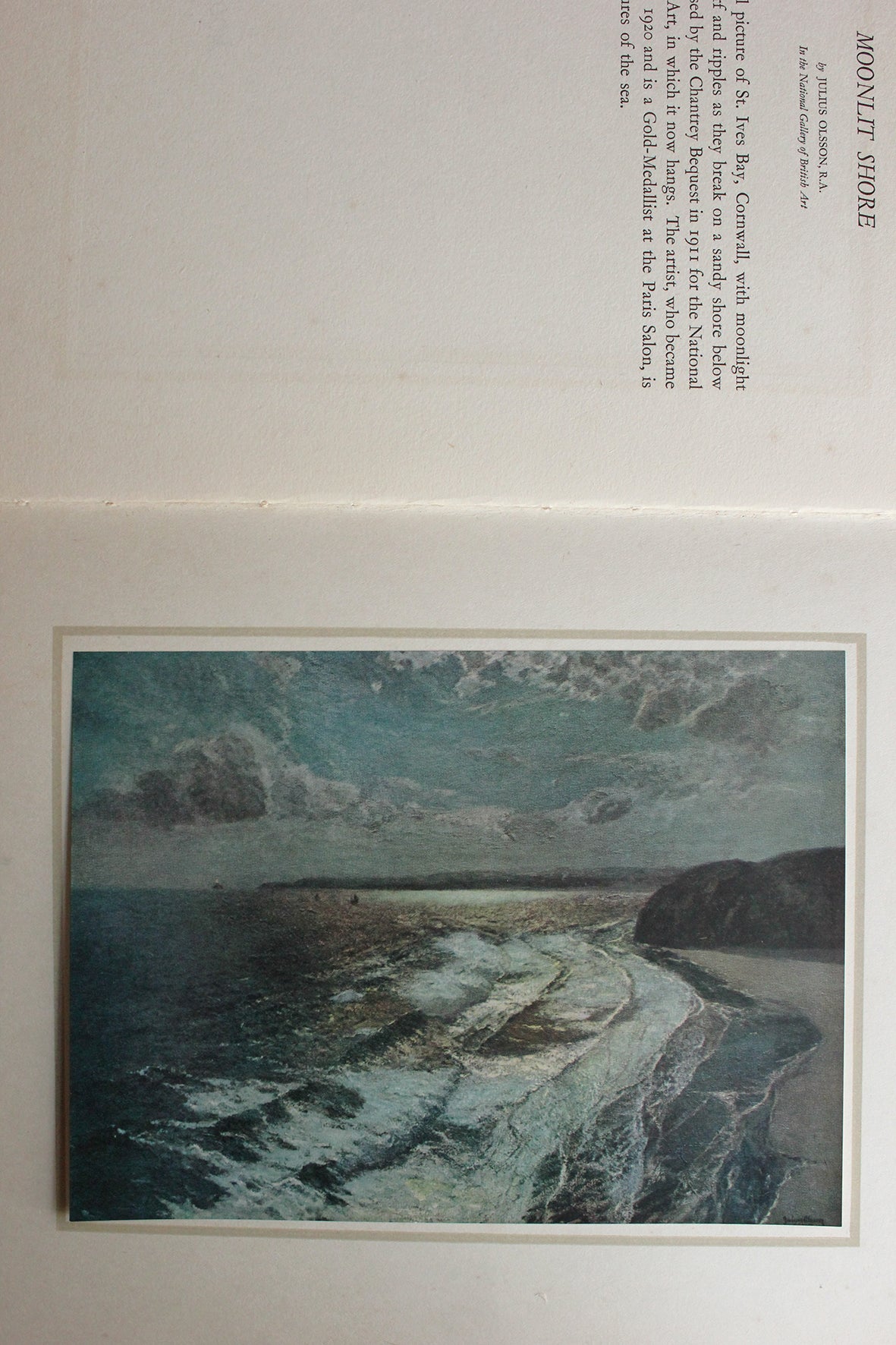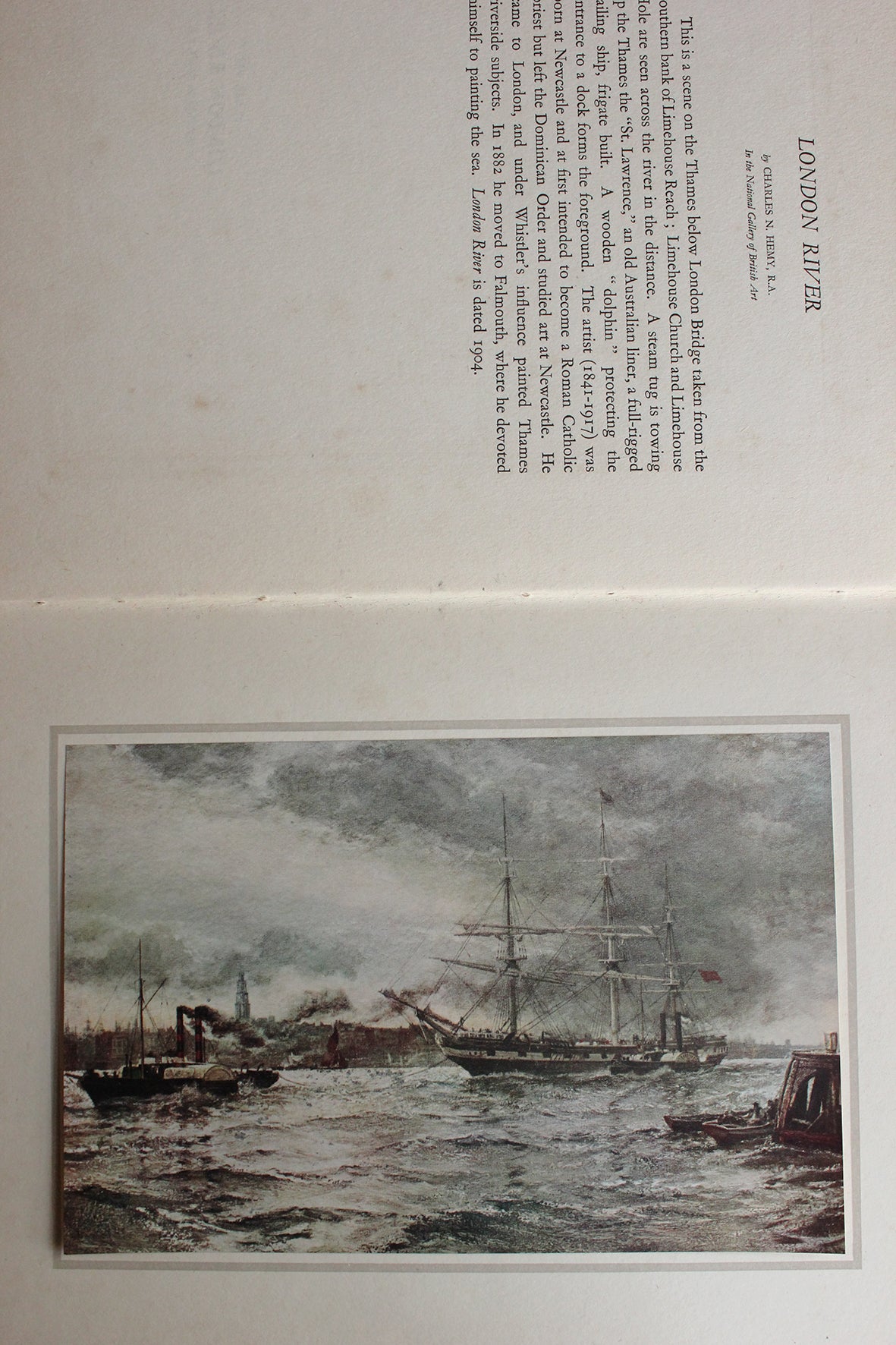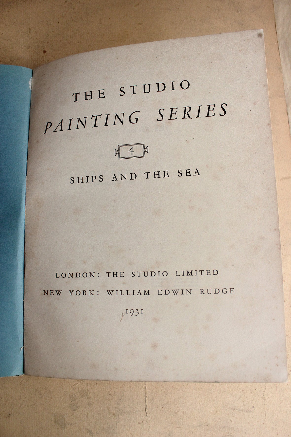I lovely old book that has been much loved over the years based on the wear to the spine and cover. It is from the Studio Painting Series and this edition is titled Ships and the Sea. It has letterpressed pages and gorgeous reproduction prints of varied paintings. I have taken lots of photographs to aid the description.