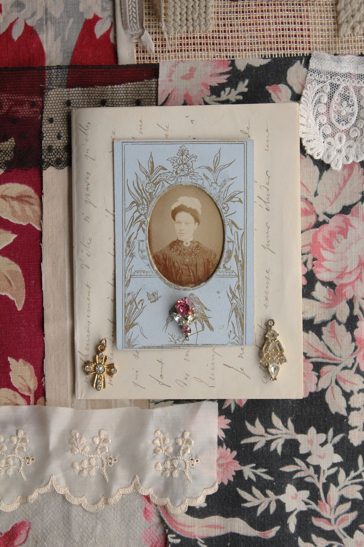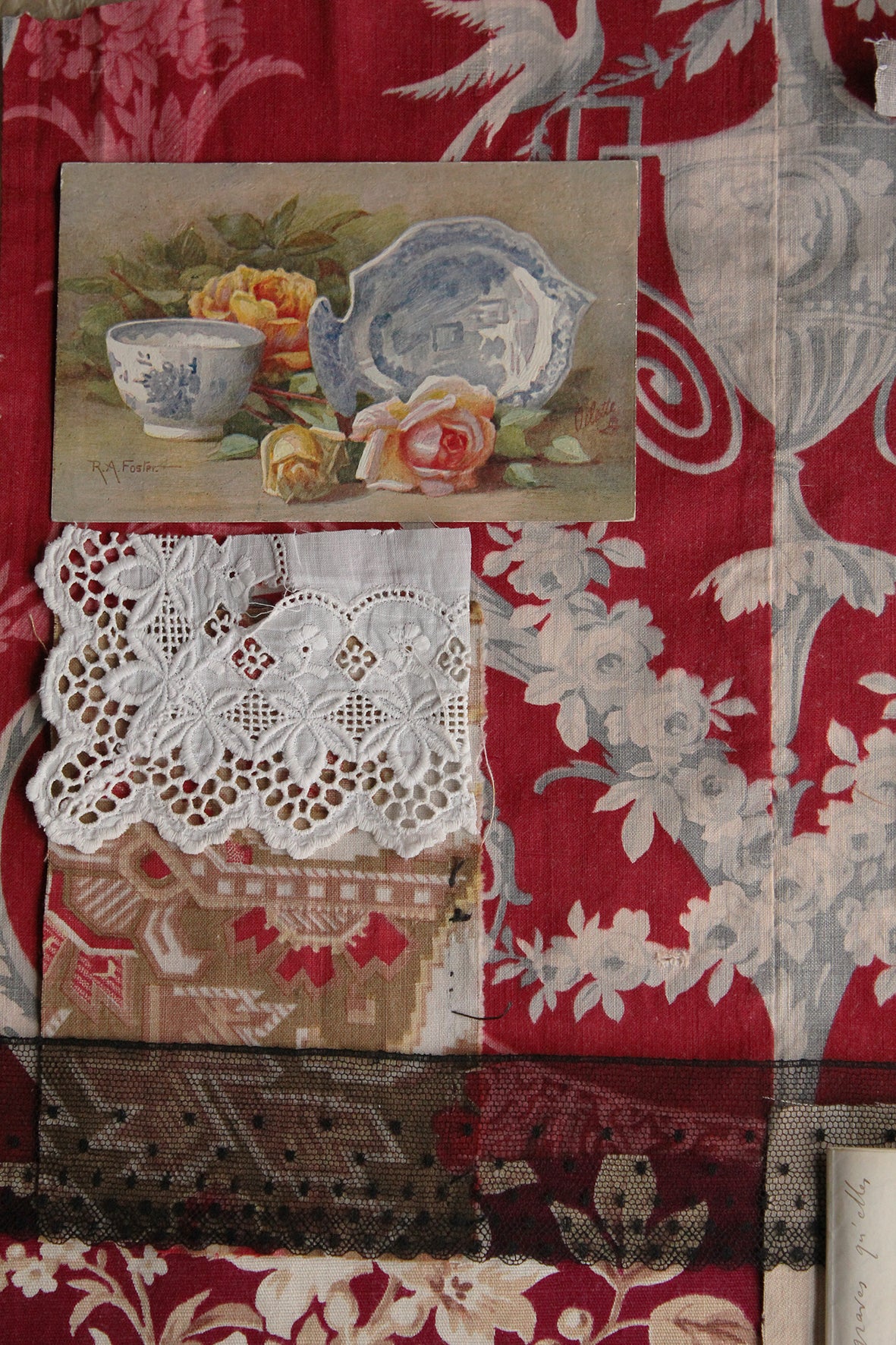 If I was a writer I would begin to start the ideas behind a novel by collecting a group of objects together whether that be a vase, a piece of fabric, a postcard, a letter, a piece of jewellery or the date on a stamp.  In a romantic or adventurous way, hoping that this gathering would lead me on a journey to unravel a story.