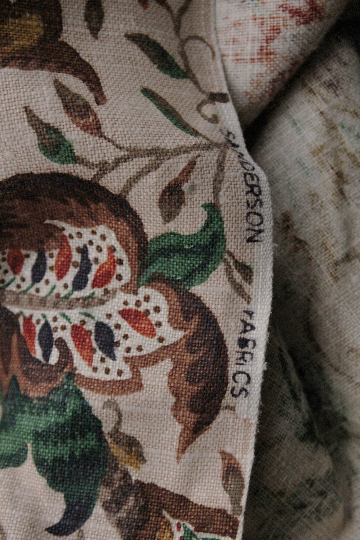 An exquisite panel of early narrow loomed Sanderson linen in a beautiful arts and crafts design. This was produced in the 1920's or early 1930's. Narrow loomed linen was the first fabric that Sanderson produced following its success in wallpapers in the mid to late 1800's.