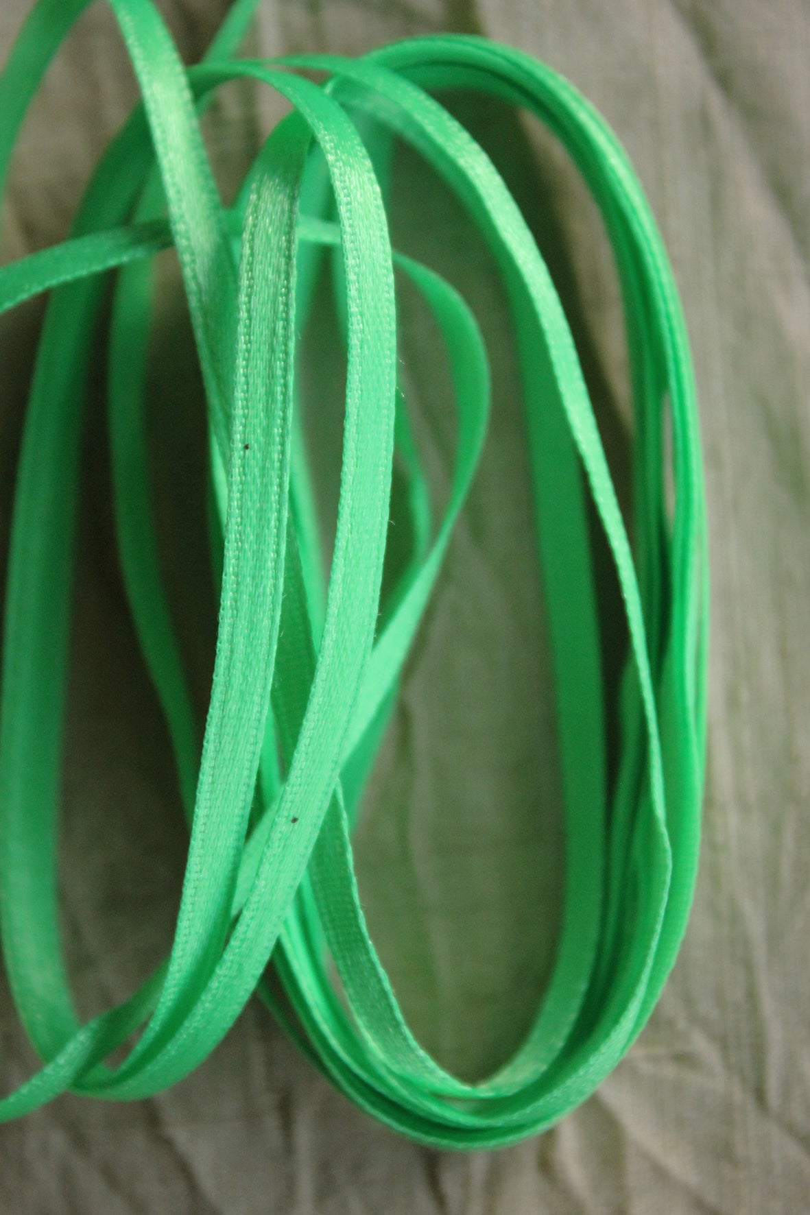 A double sided satin vintage ribbon in a neon tone that was prominent in nineties perspex furniture and ladies lipstick in nineties house clubs.....I'm sure you can add your own memories to the list.