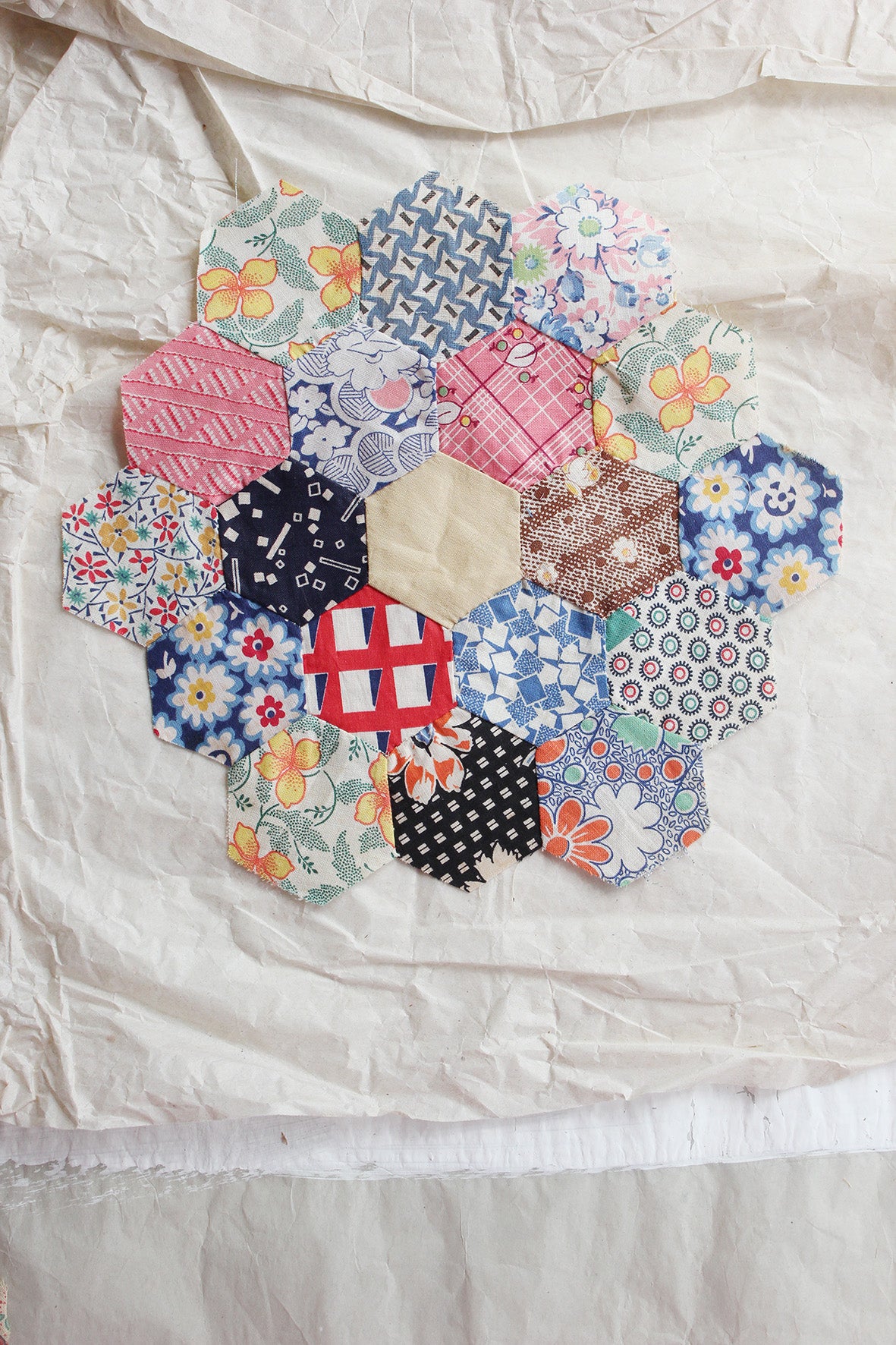 Each panel is hand stitched, laboured over for hours and hours using small polygons (19 in each block).  I like to imagine the conversations these panels have witnessed, the varied people it has had the pleasure of meeting and the story of the lady who invested so much time into these panels that were never finally constructed into anything for any use.
