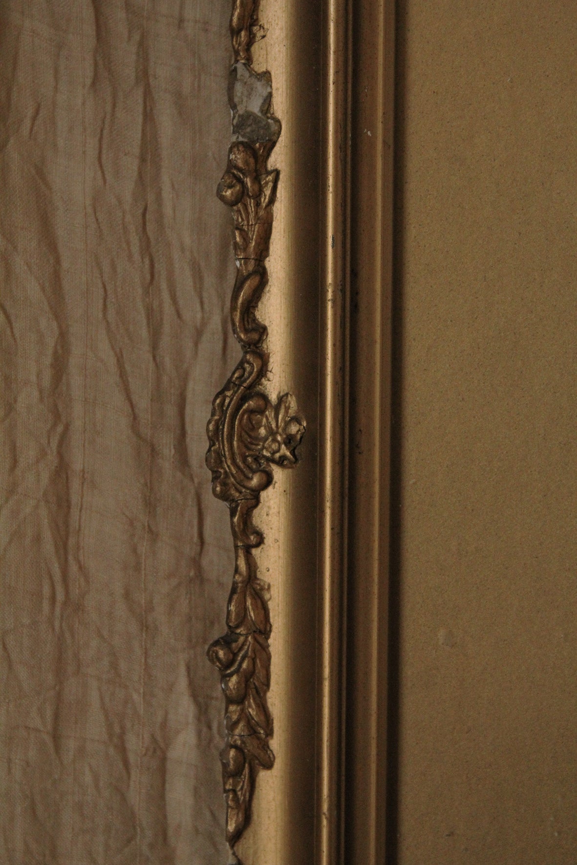 It is in it's original gesso and gilt frame and measures 46.5cm x 59cm. There are knocks to the frame and mount here and there from its journey.