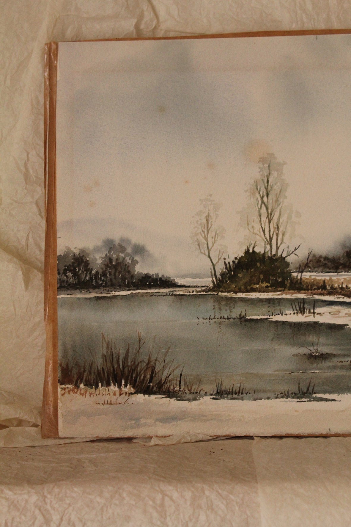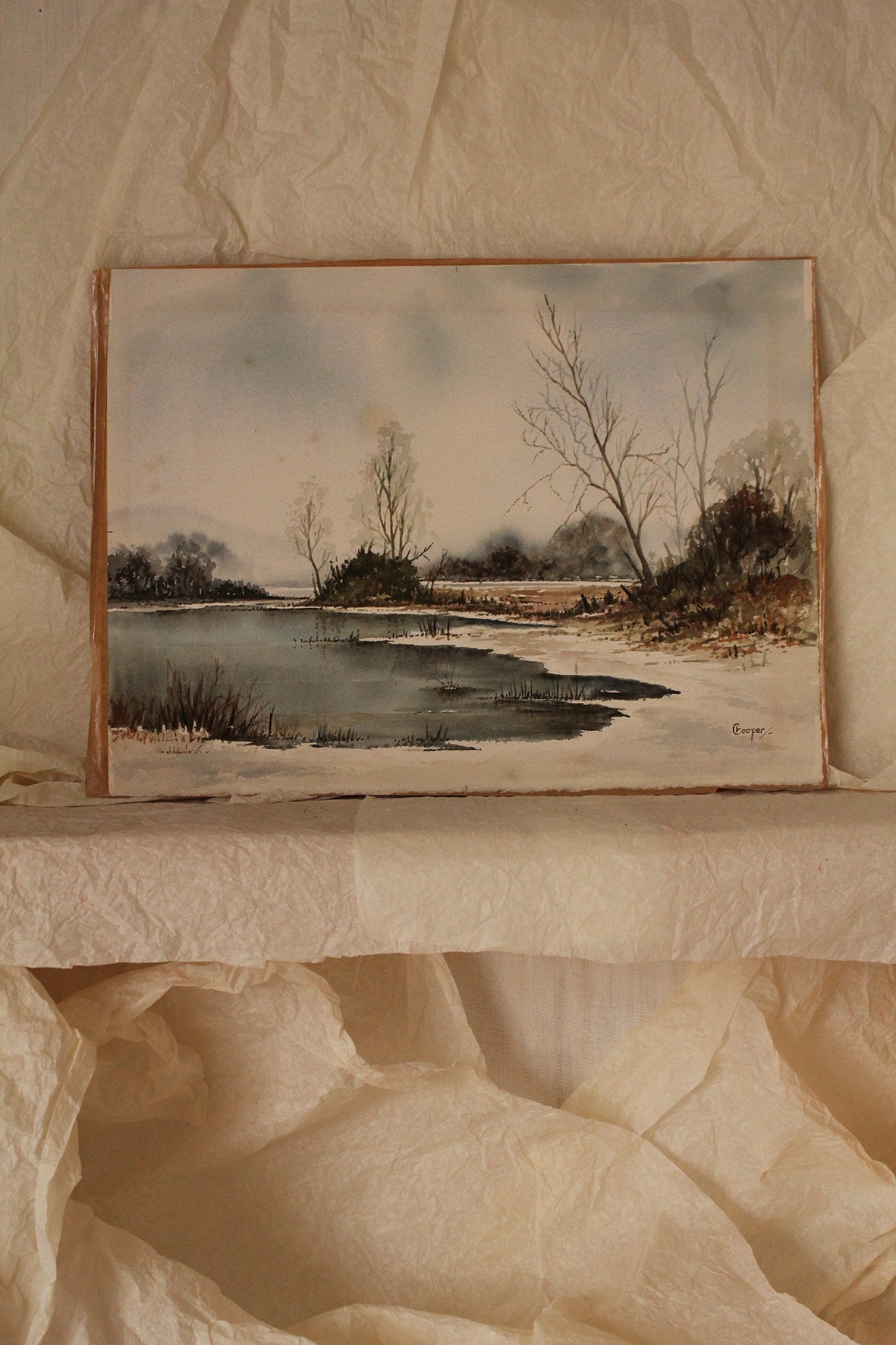 A beautiful atmospheric vintage watercolour. Captures the beauty in the mist over a lake early in the morning. A painting that is wonderful in technique and would settle rather well in a calm corner of your home.
