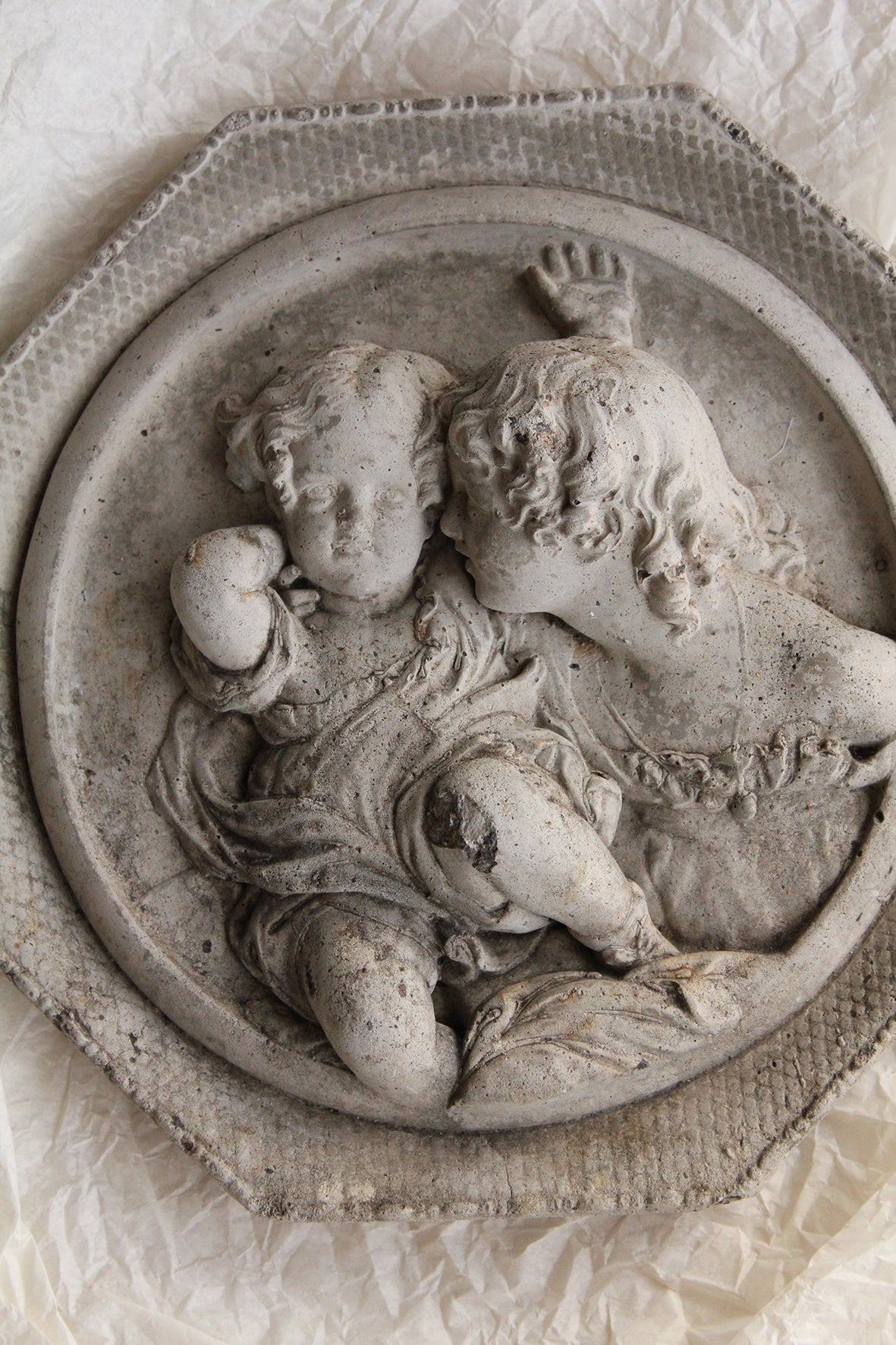 A lovely stone plaque of a representation of the 'Calmady Children' 19th Century Oil Painting by Sir Thomas Lawrence.