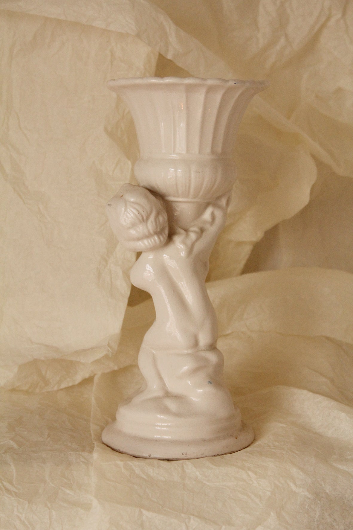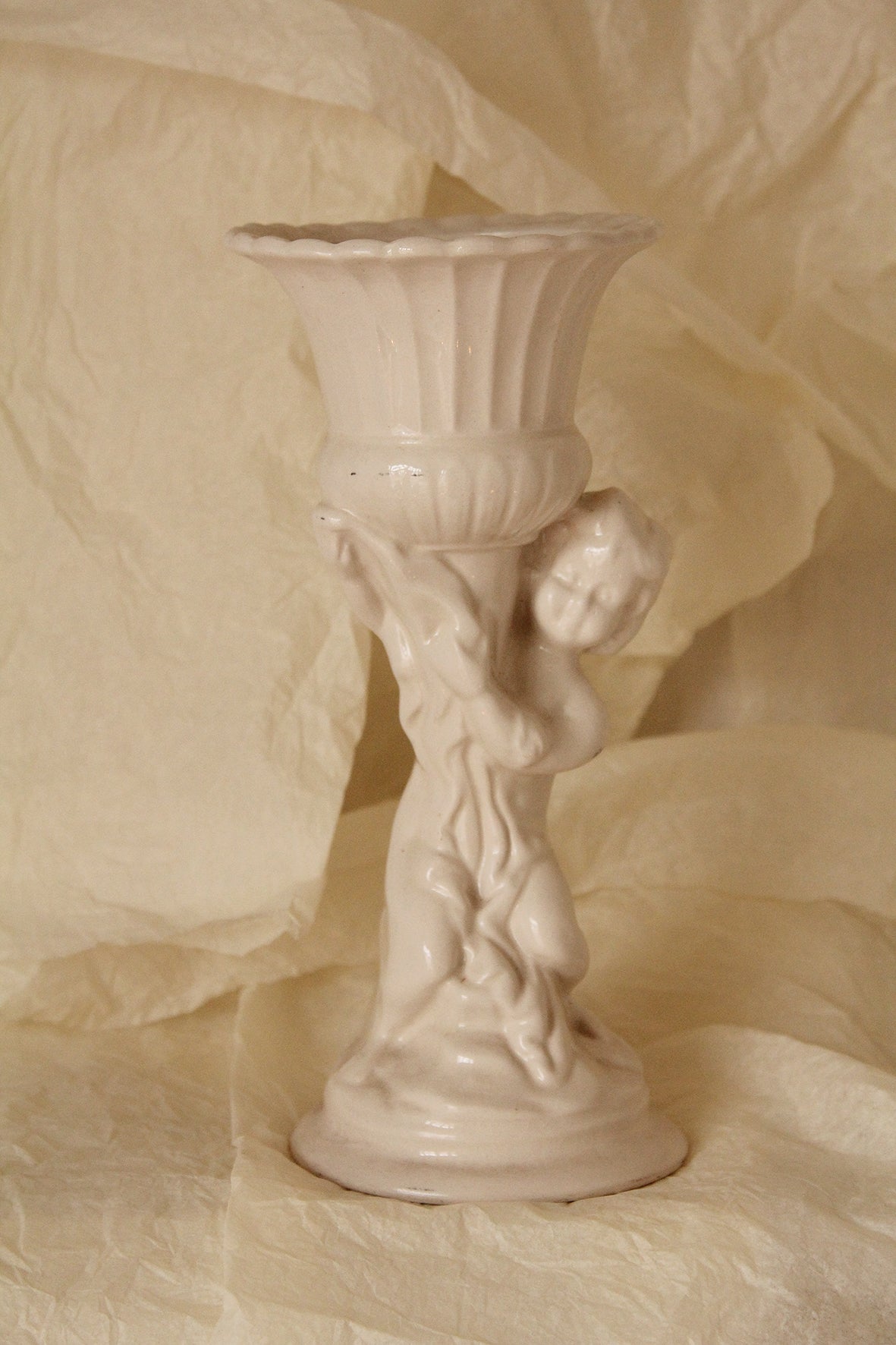 A sweet vintage cherub vase, the inner is perfect for a few single stem flowers or feathers as the hole narrows as it travels inside.