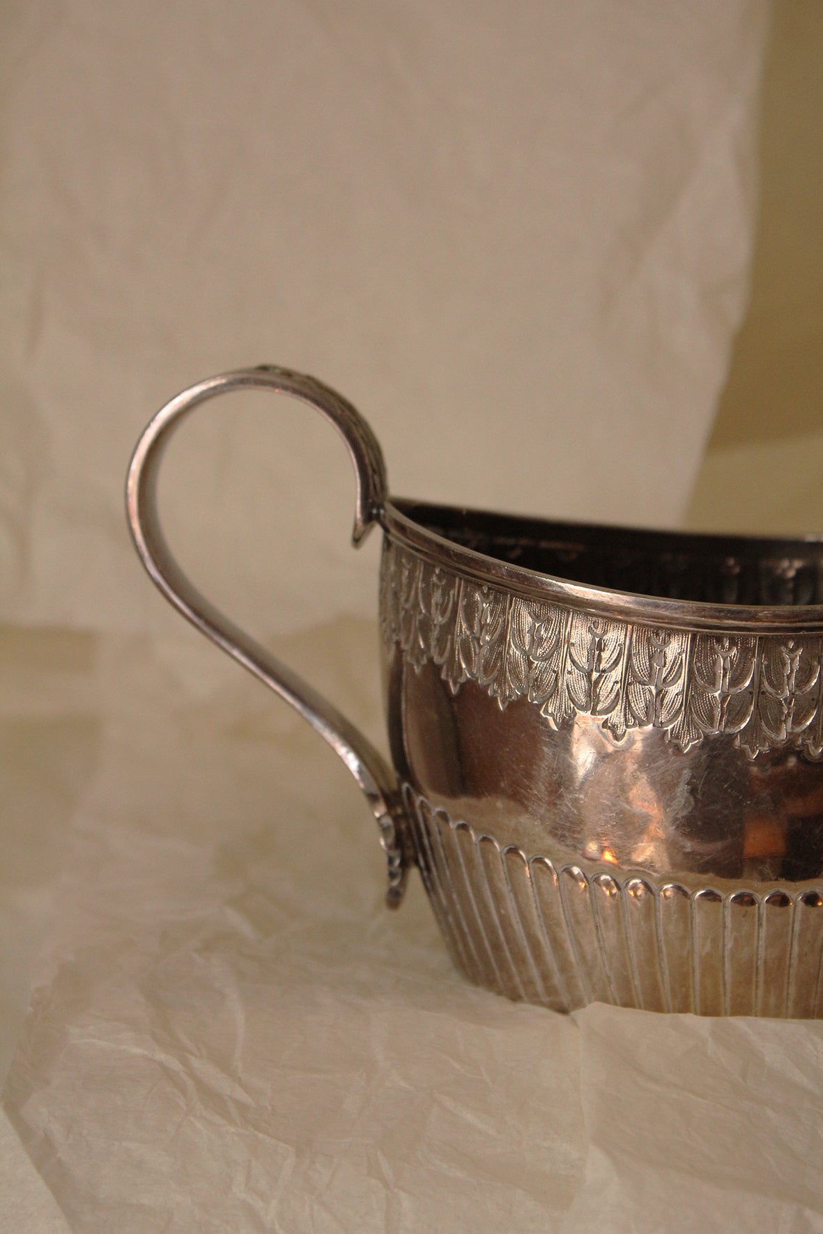 Antique Decorative Worn Patinaed Silver Pot