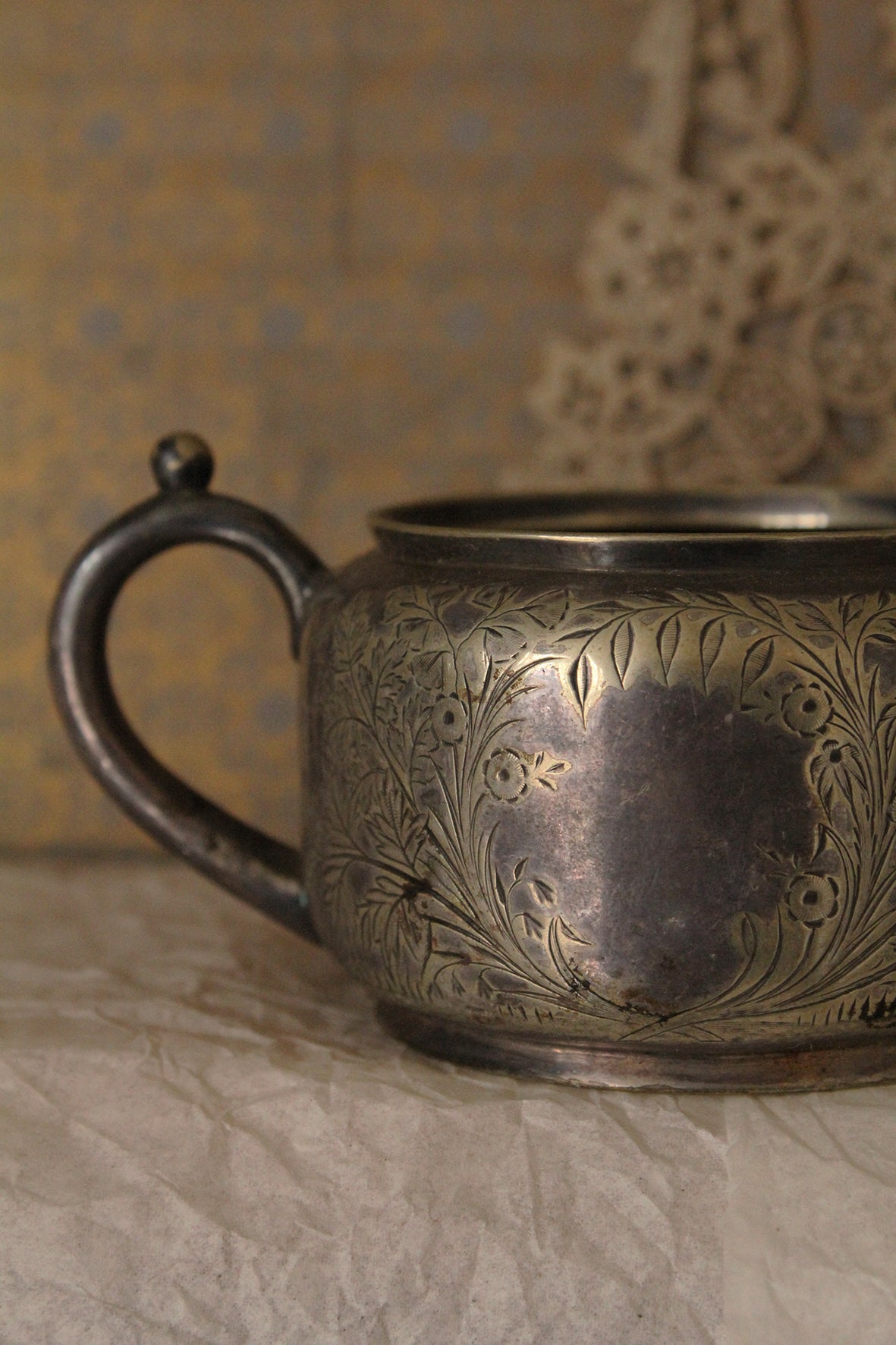 Antique Decorative Art Nouveau Pewter Silk Lined Pot