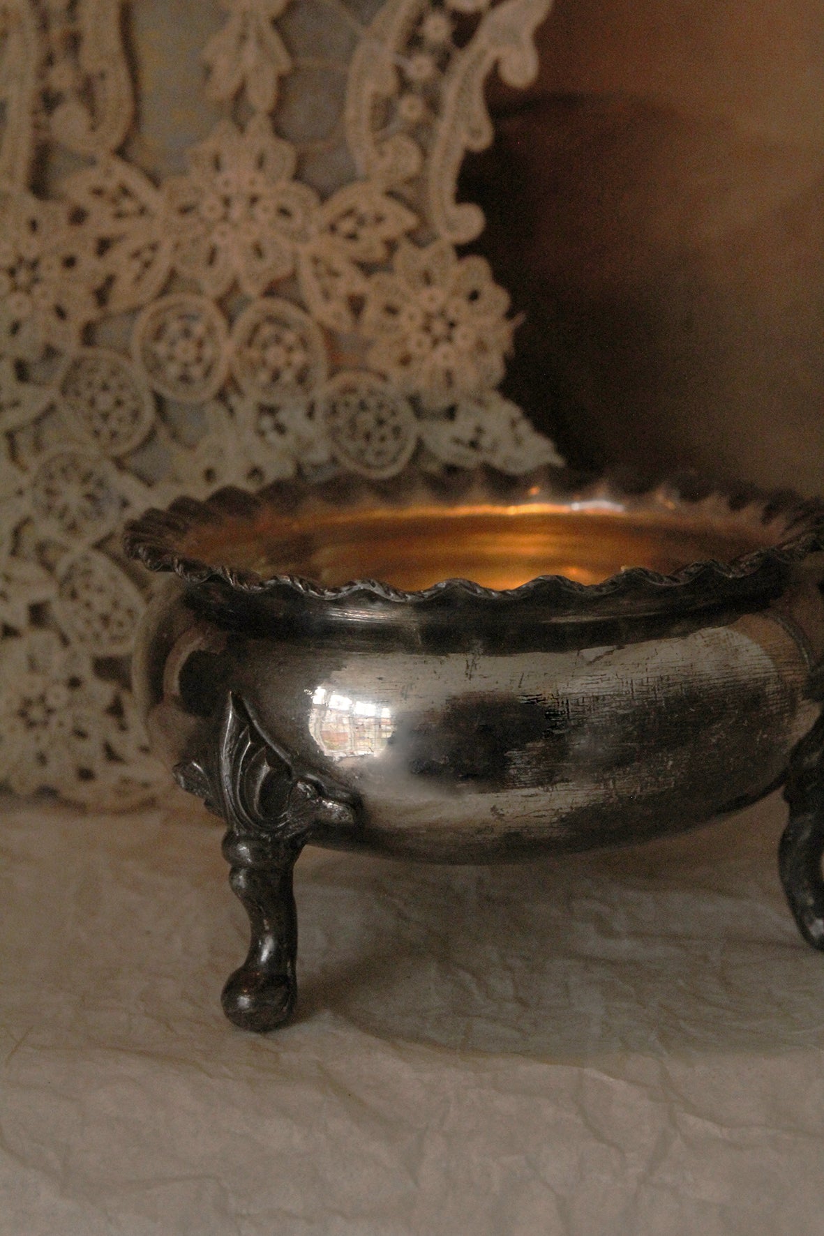 A wonderful old silver plated legged dish, possibly originally used for bon bons.