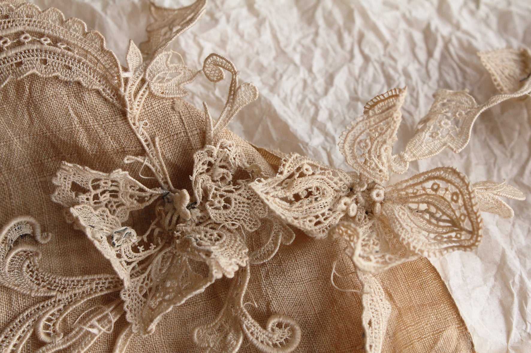 Beautiful Rare Sculptured Panel of Schiffli Linen Lace