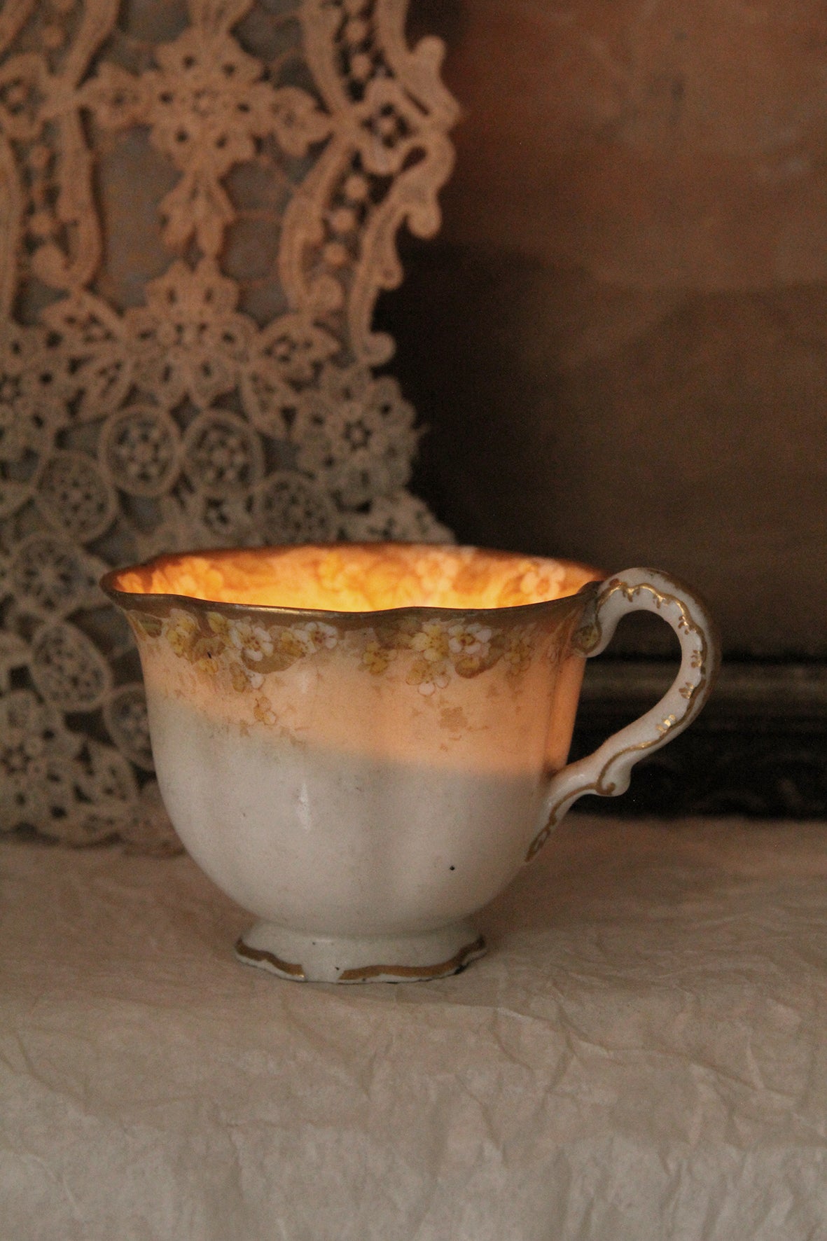 A sweet old cup that is decorated with blossom flowers, the colour and feel of the cup reminds me of Chamomile.
