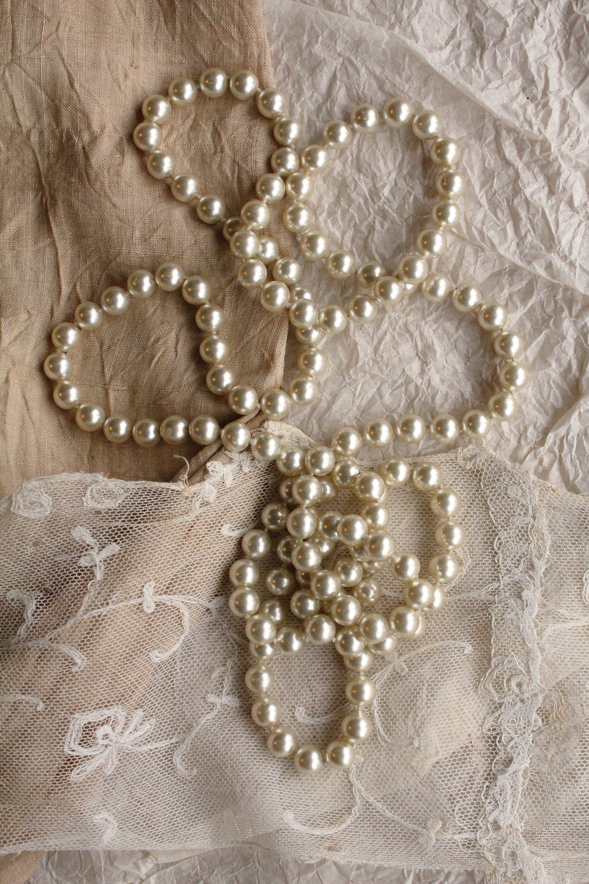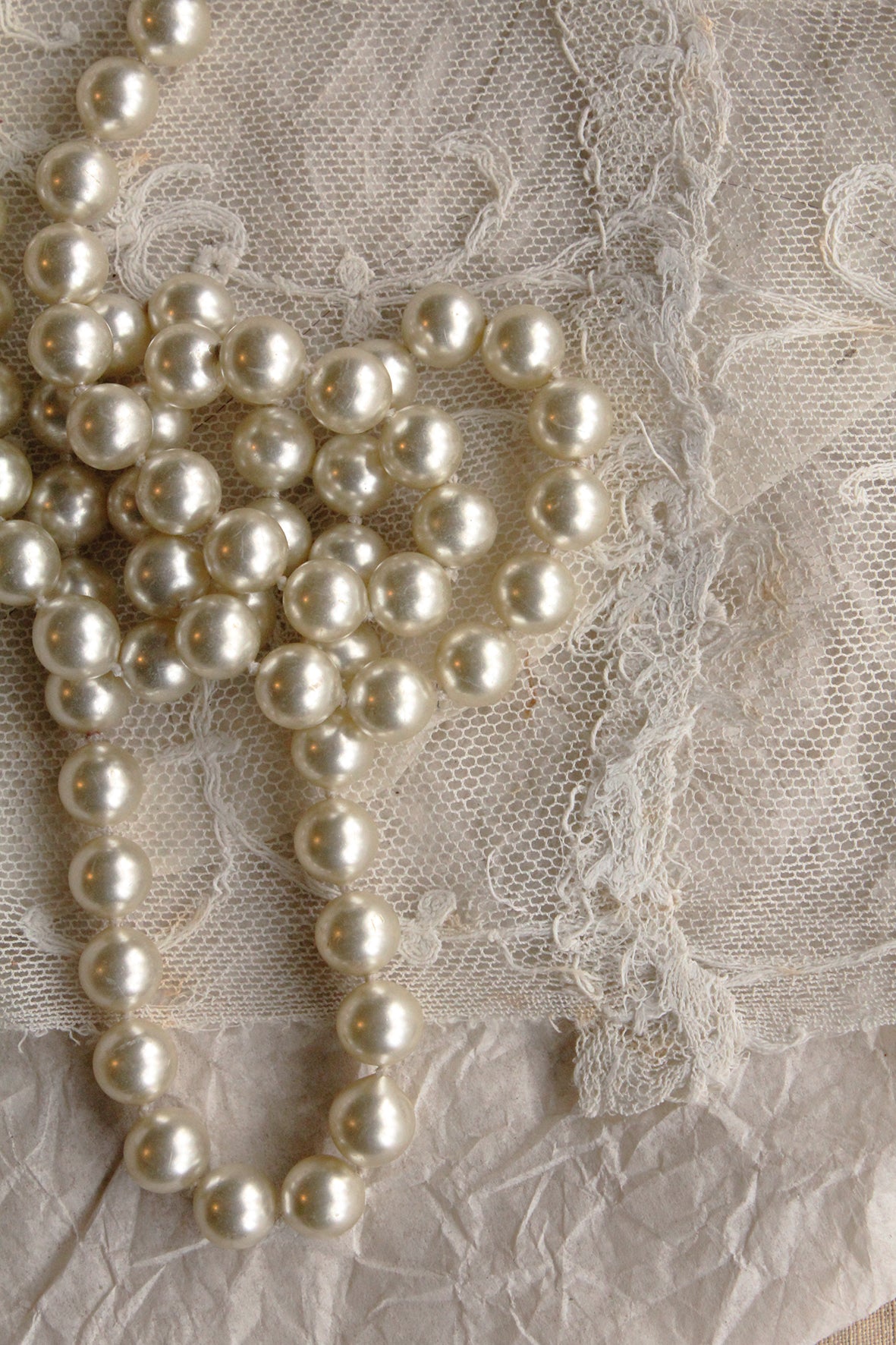 Long Vintage Faux Pearl Glass Necklace