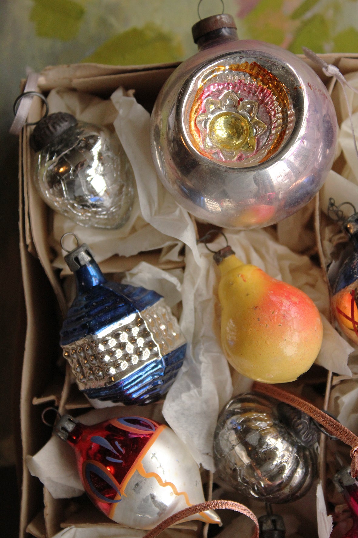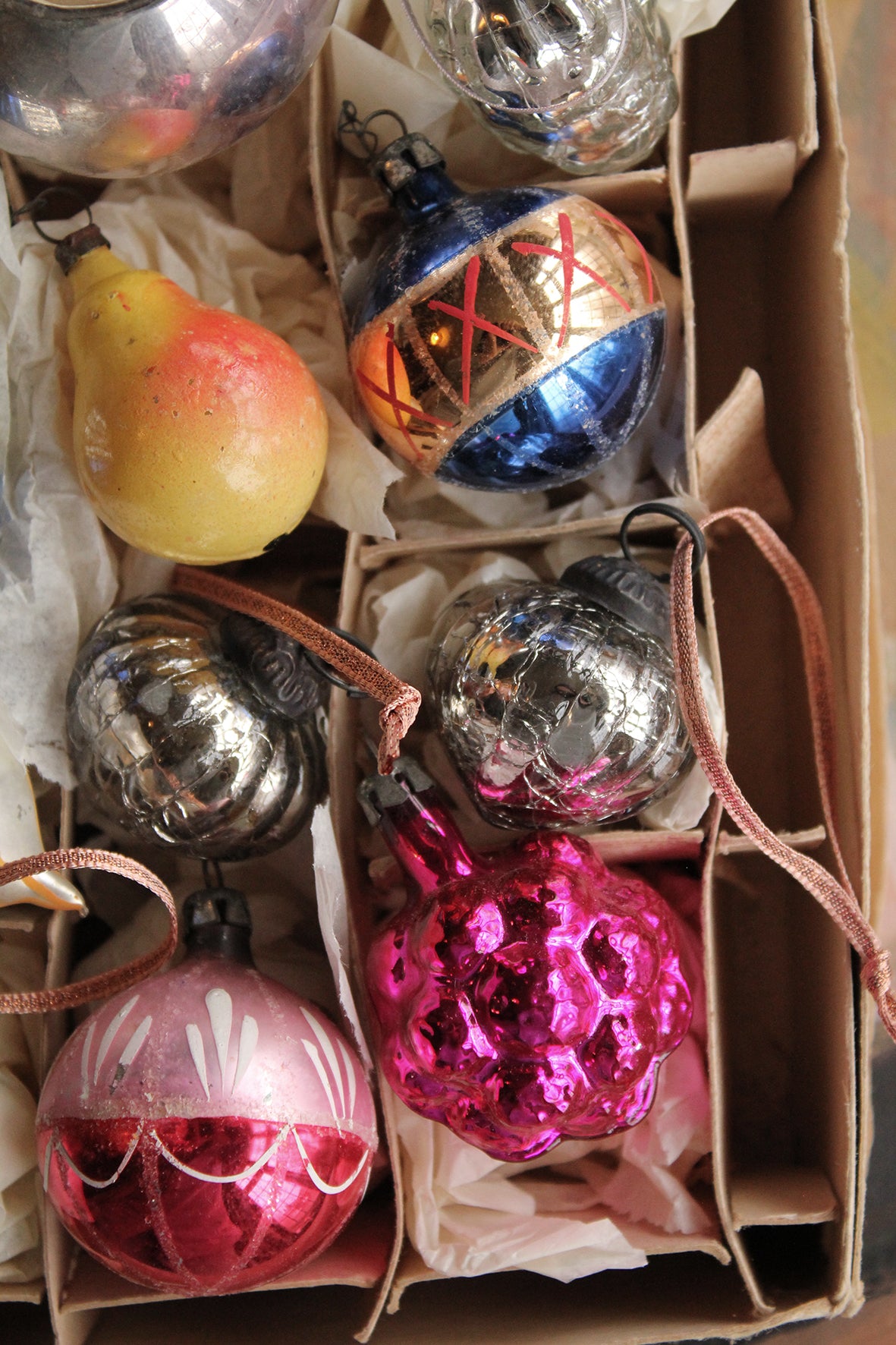 A beautiful collection of glass baubles, some are old and precious and some are from my glass decoration collection.