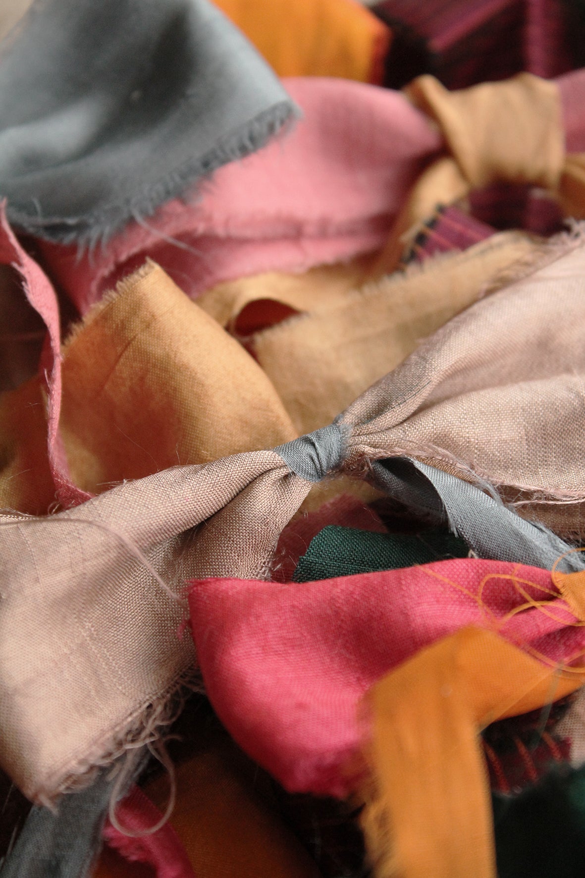 This lovely collection of jewel hues is approx 15 metres in total in varied lengths and widths. On average a length is 60cm - 80cm, but there may be the odd shorter piece too.