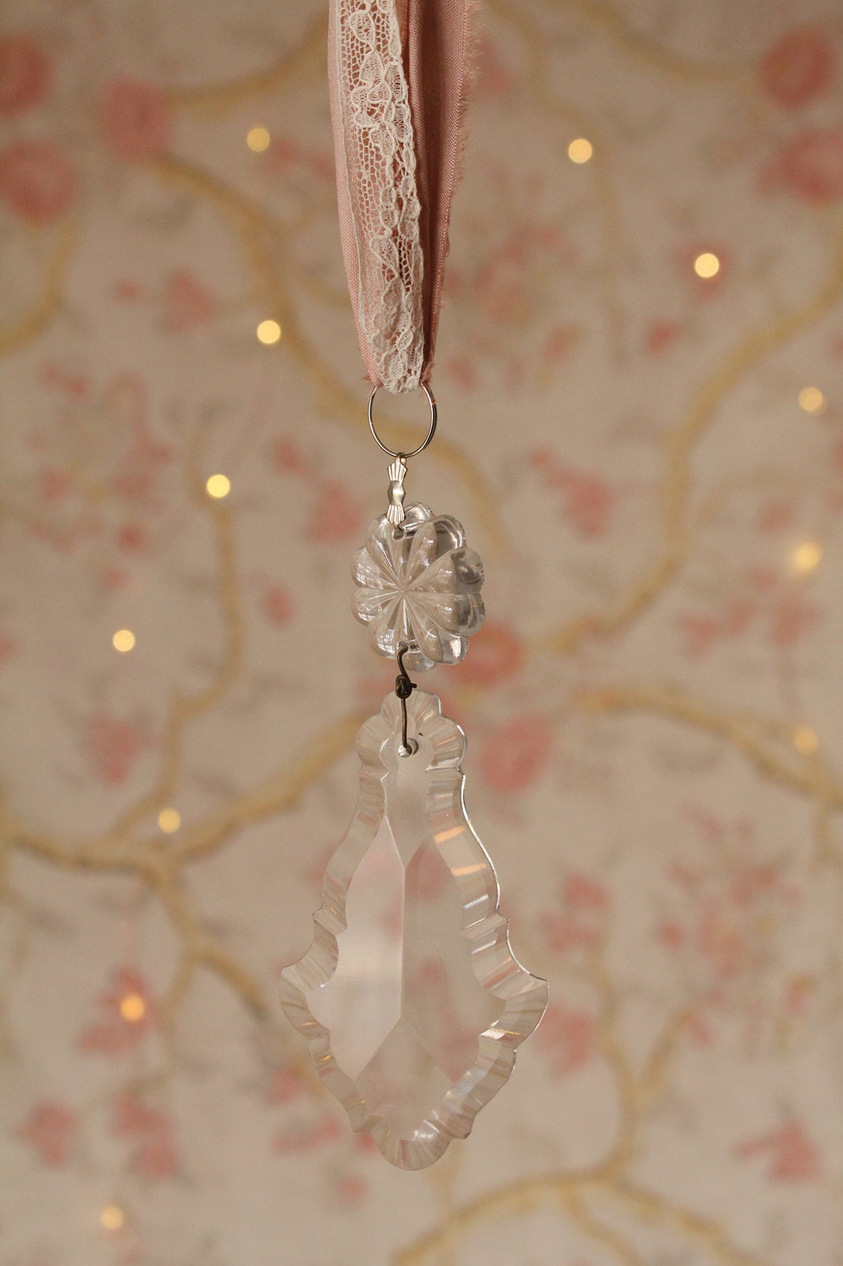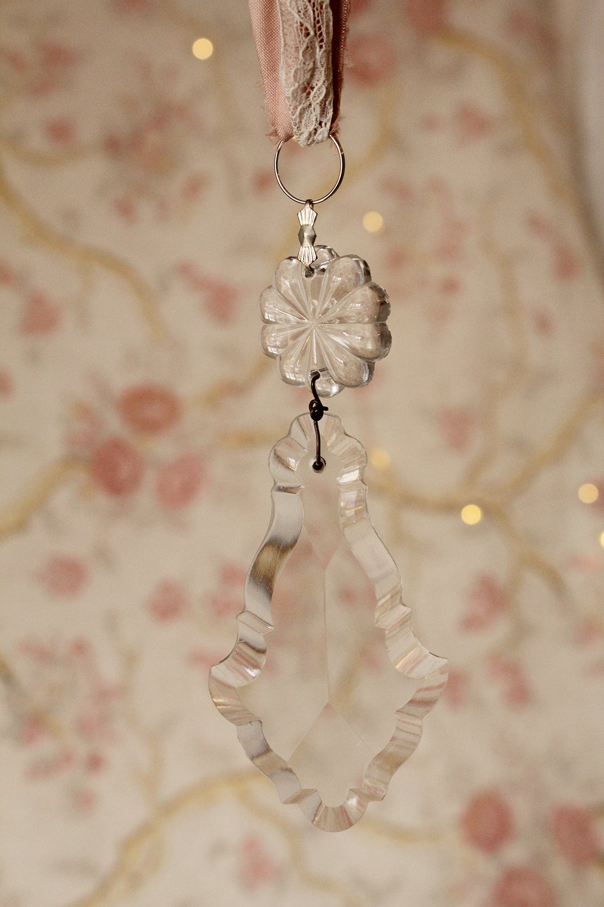 Beautiful Large Cut Glass Chandelier Decoration With Silk & Lace Hanger