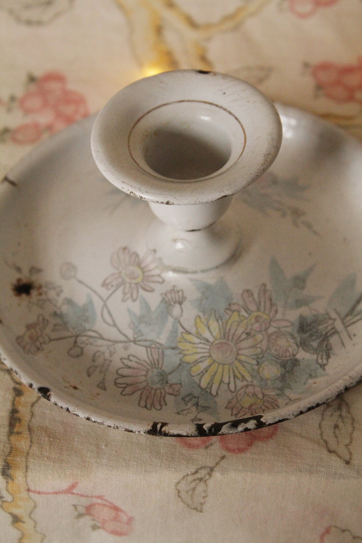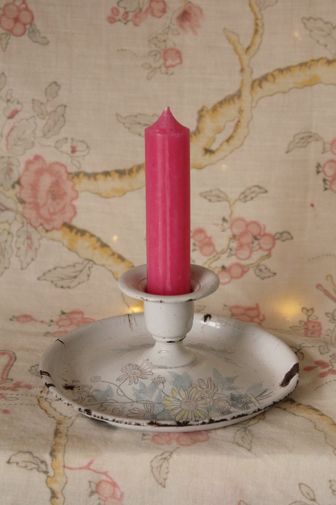 Vintage Enamelled Floral Chamber Stick