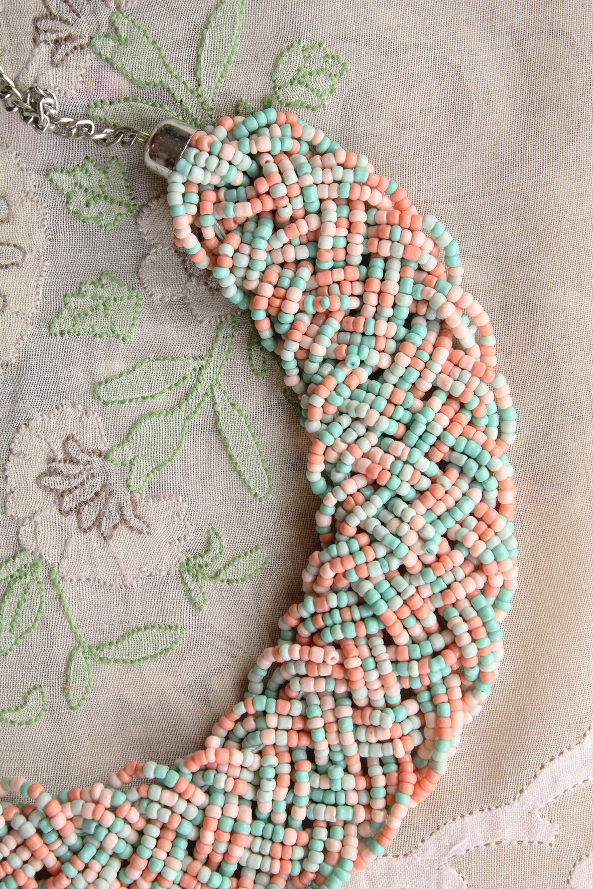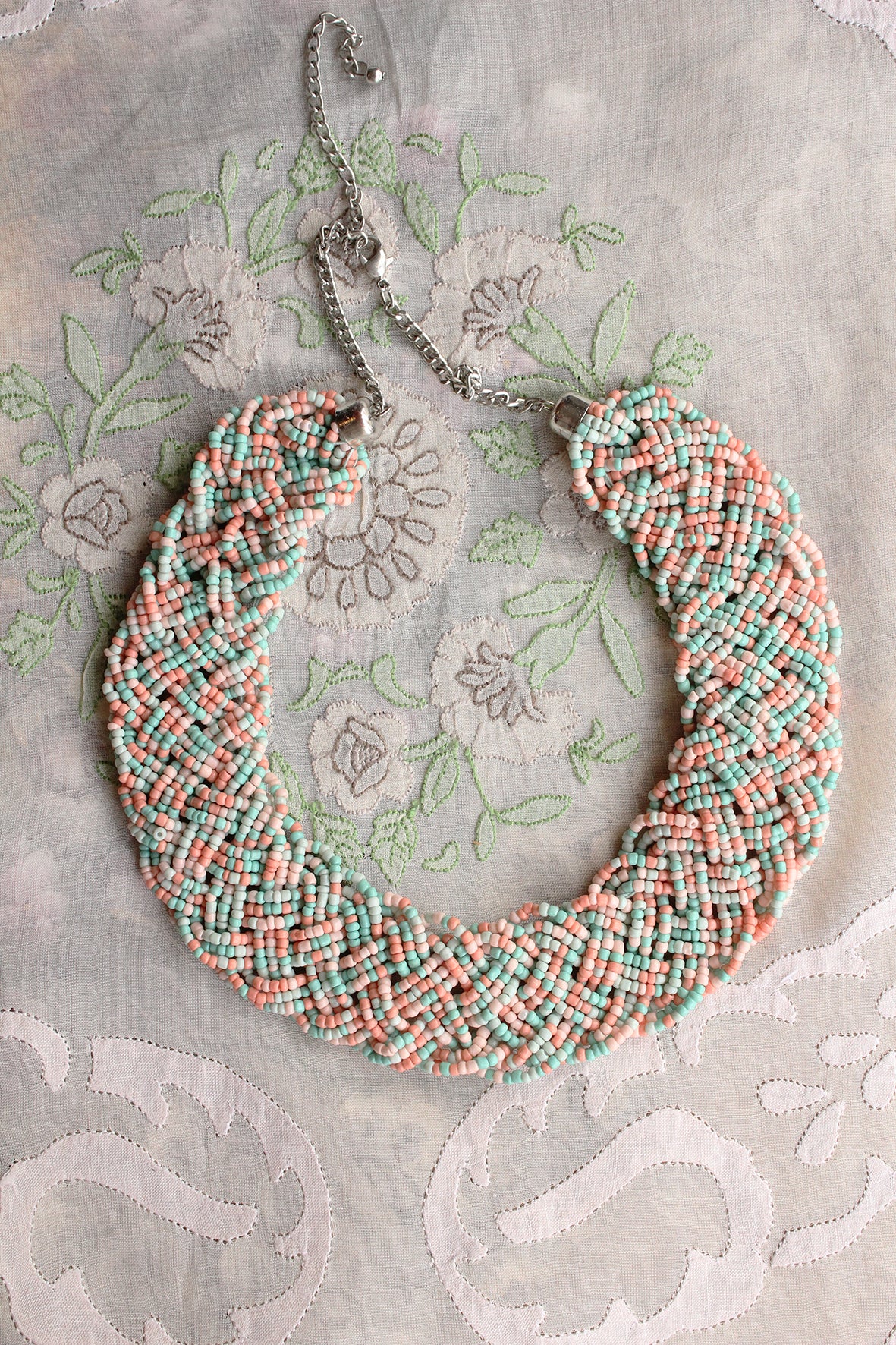 Vintage Hand Beaded Necklace - Pastel
