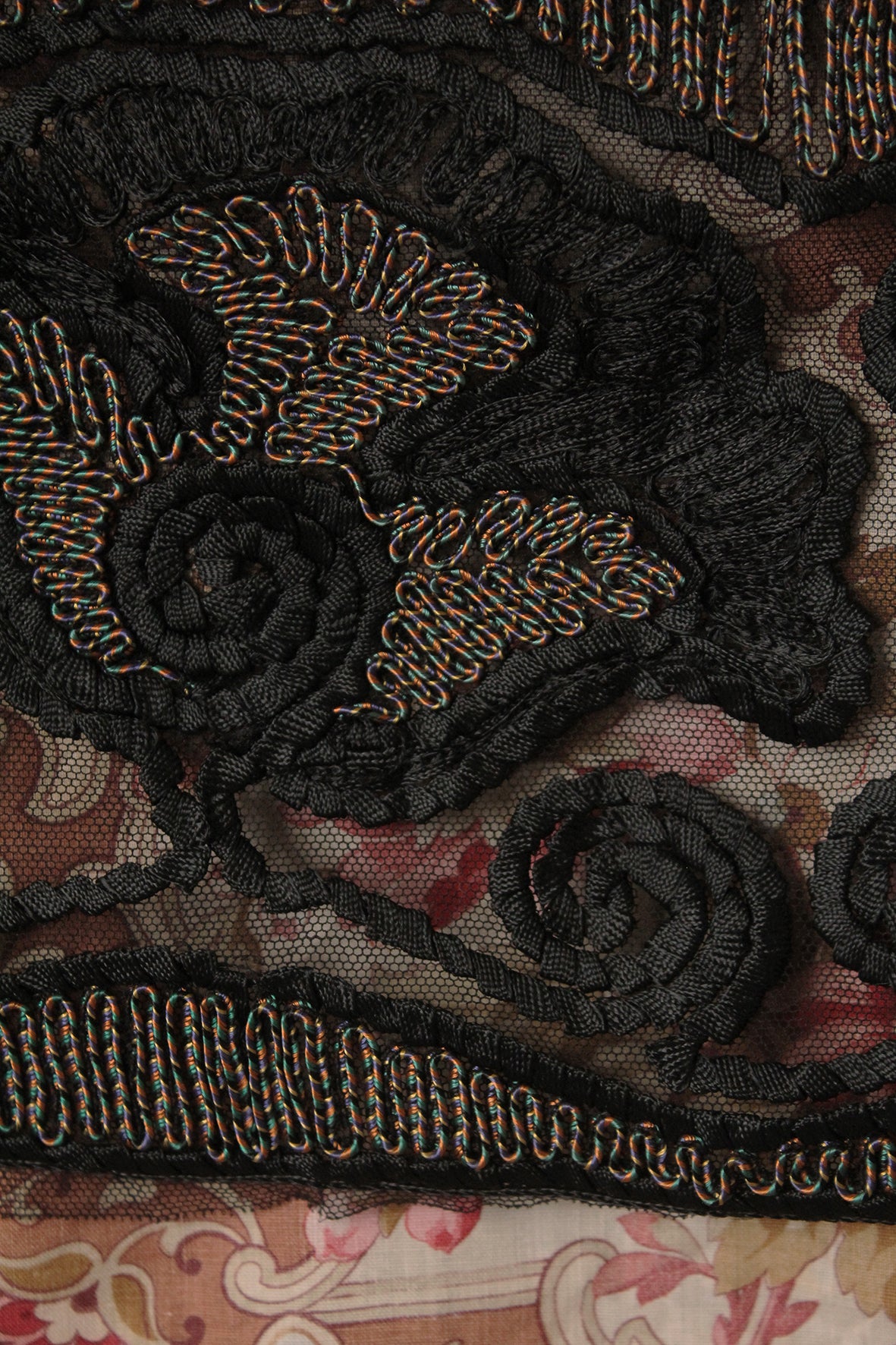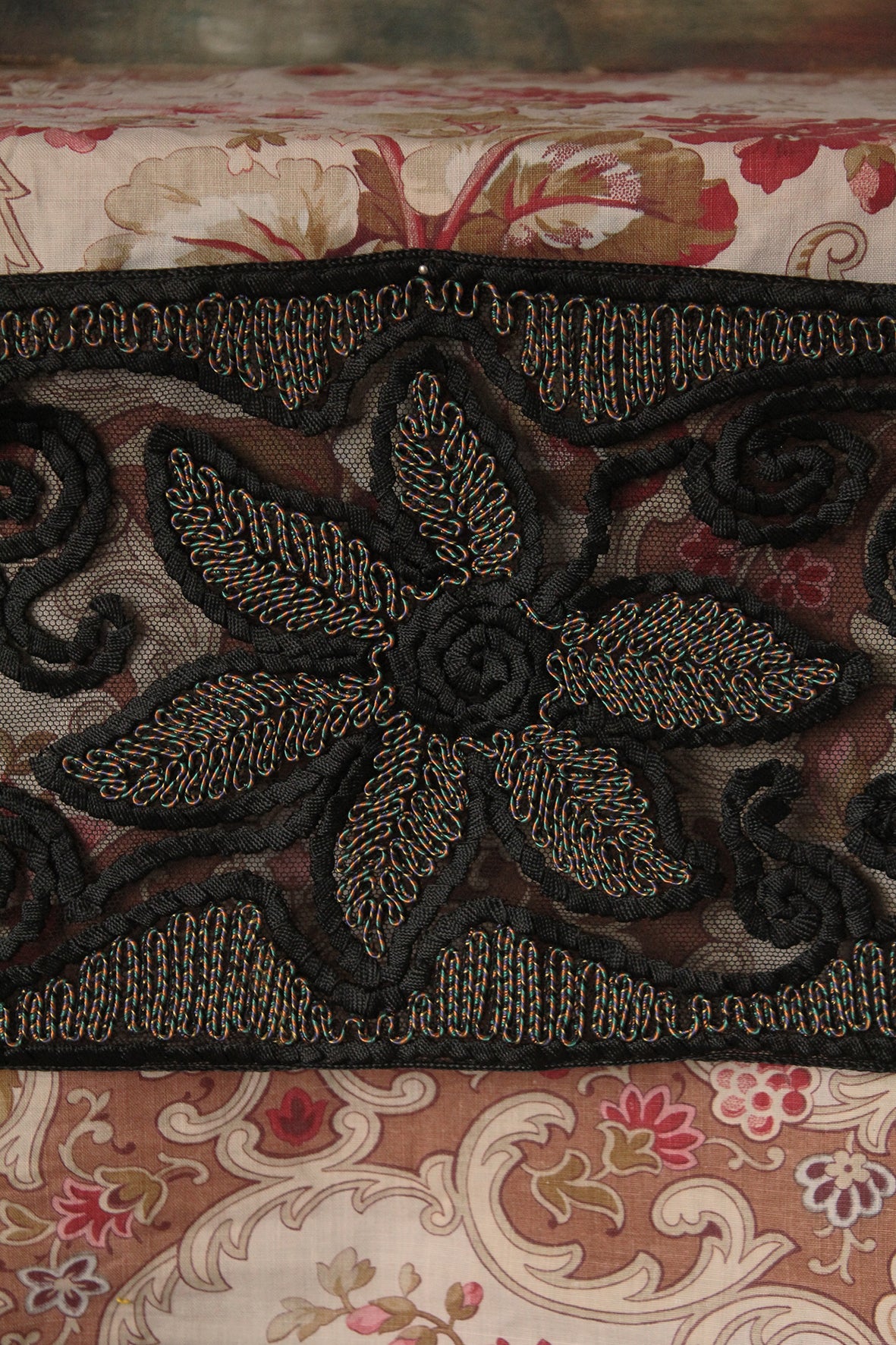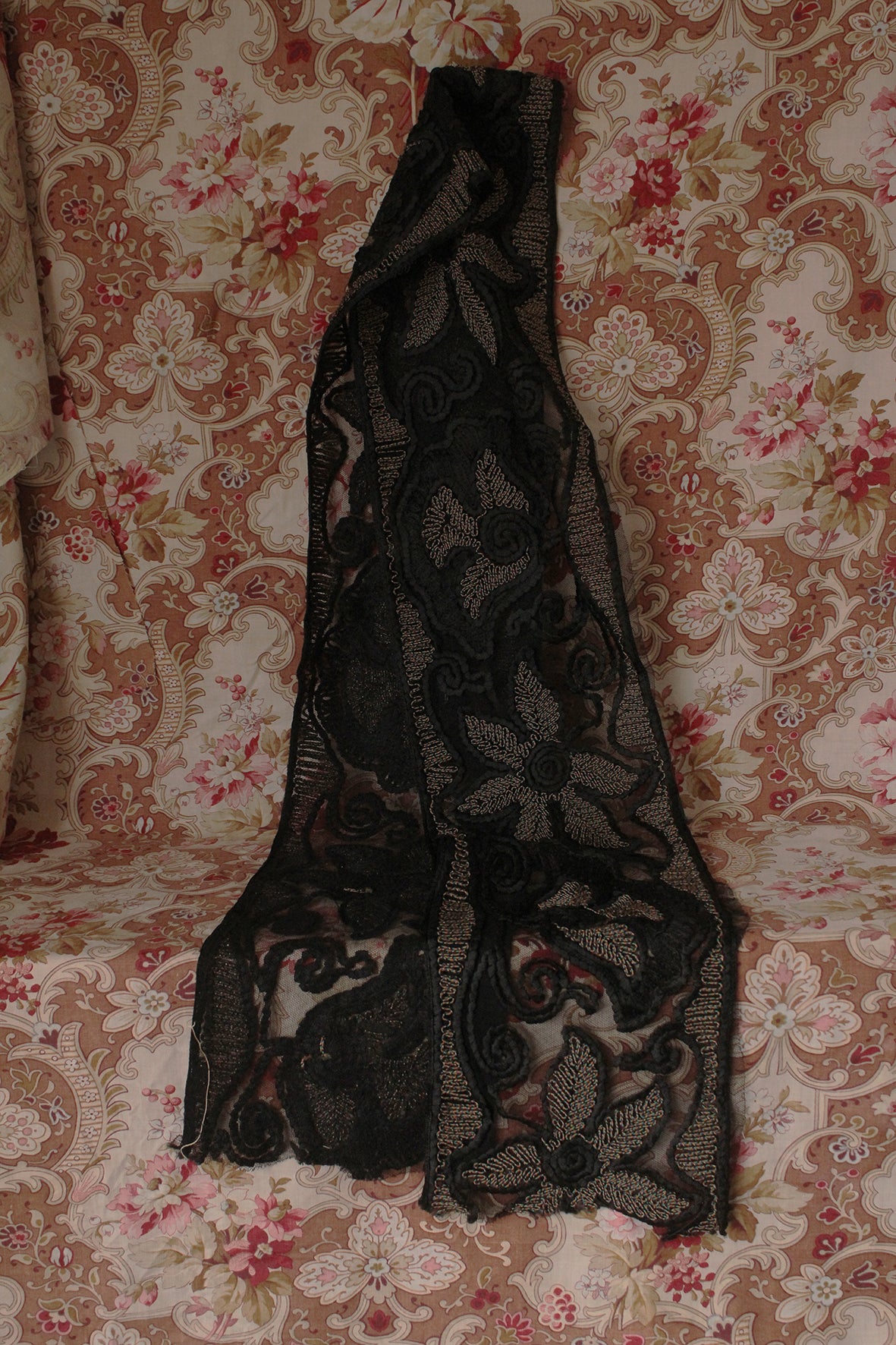 A Detailed Wide Art Deco Border/Reclaimed Scarf - Ribbon Embroidery and Couch Stitch