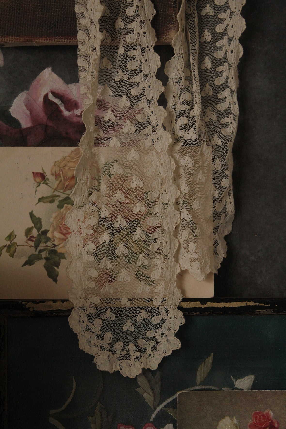Beautiful Antique Bridal Scarf - Leaves & Lovehearts