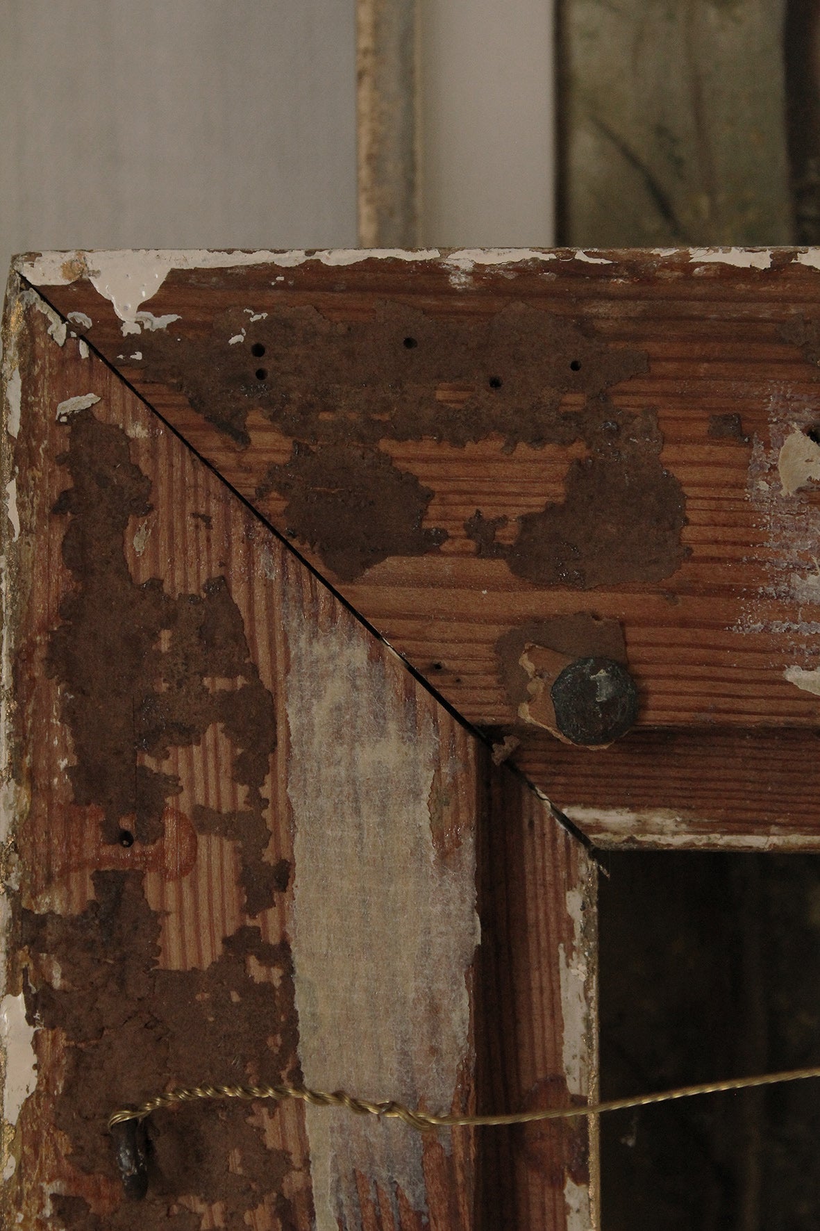 This frame is in good structural condition for age. Just a knock to the aperture corner, to the right side and a few old worm holes that have been treated but have also been treated here in the studio.