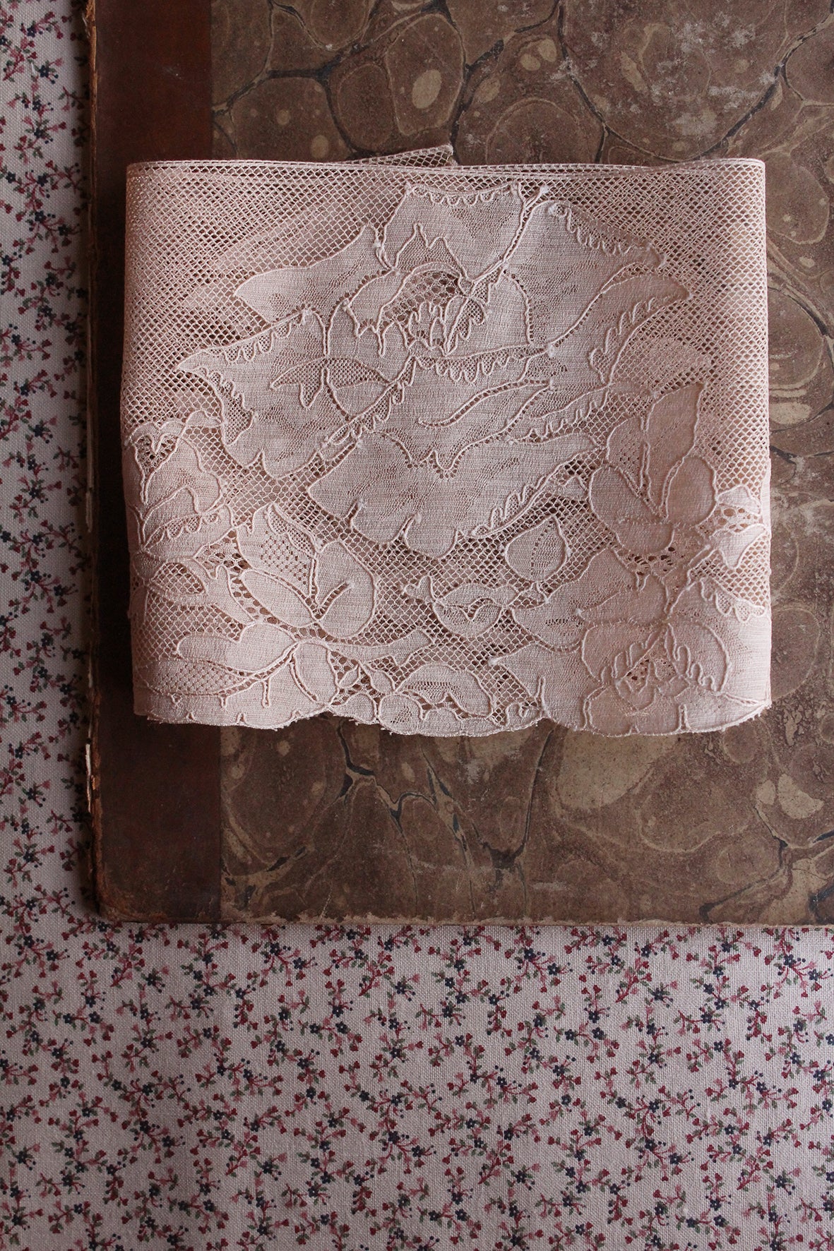 I have acquired a small collection of French lingerie lace from the 1920's possibly early 30's that was found all together in an old box that was originally from (what I assume) was the original atelier.