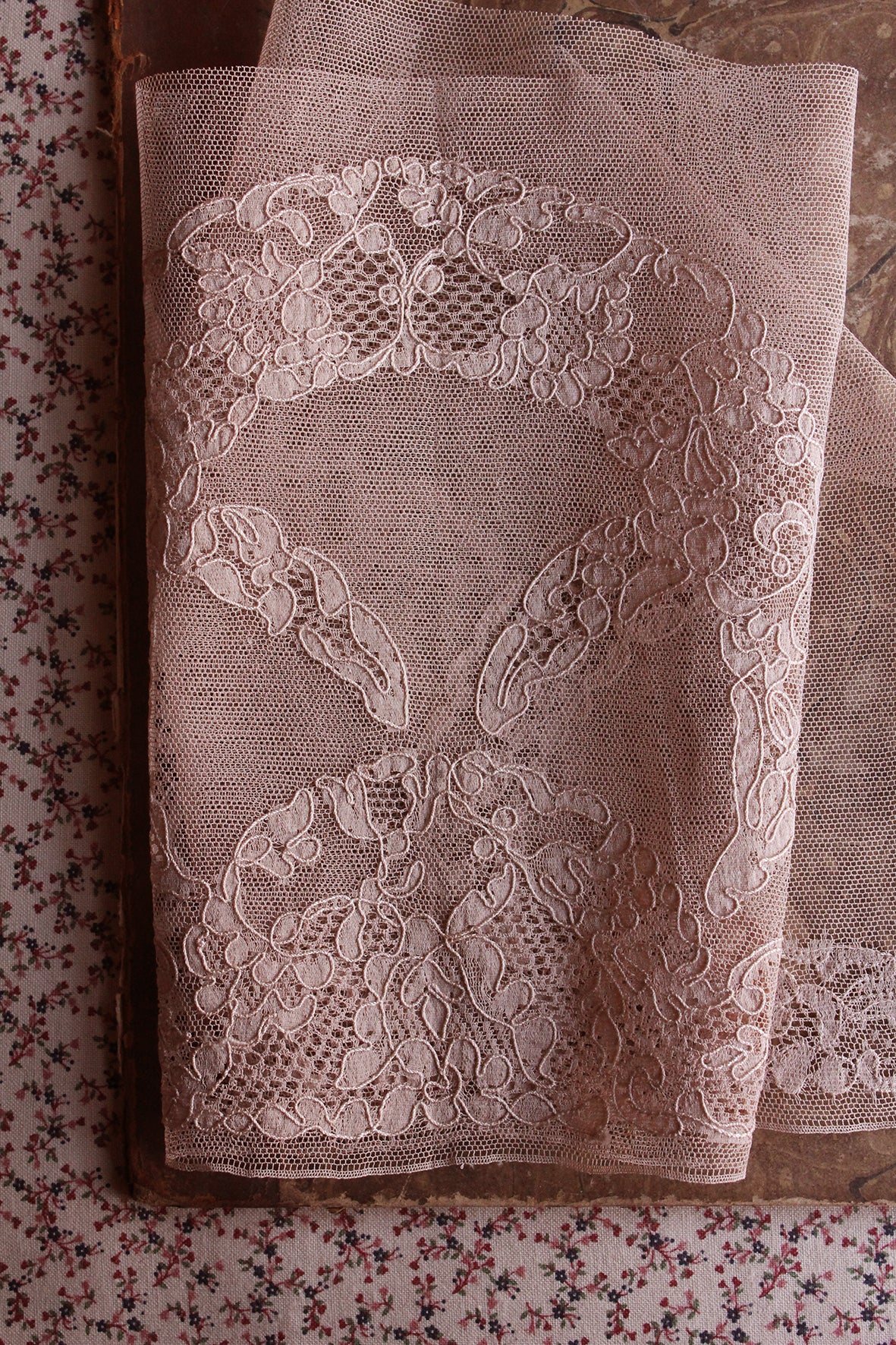 I have acquired a small collection of French lingerie lace from the 1920's possibly early 30's that was found all together in an old box that was originally from (what I assume) was the original atelier.