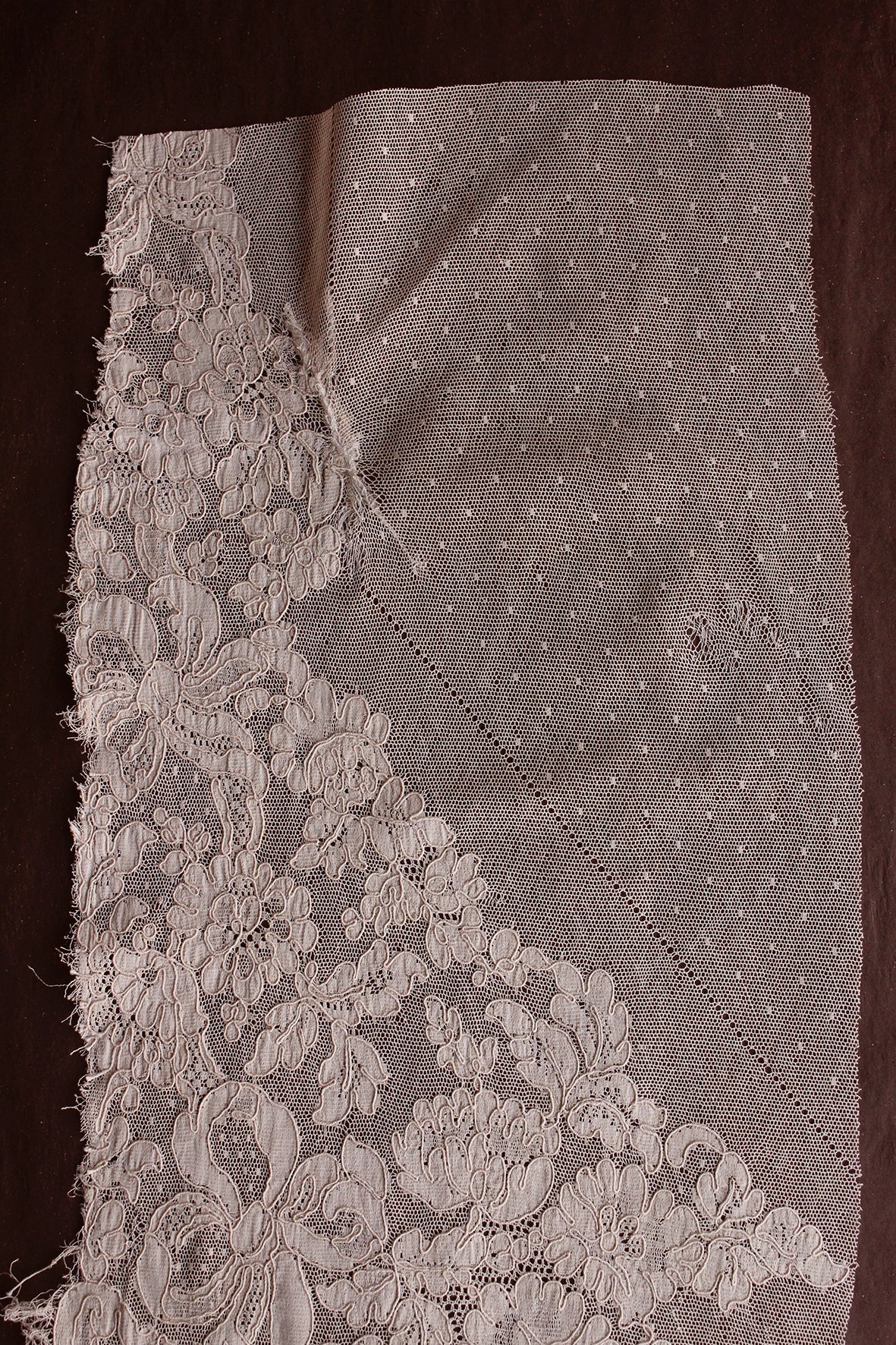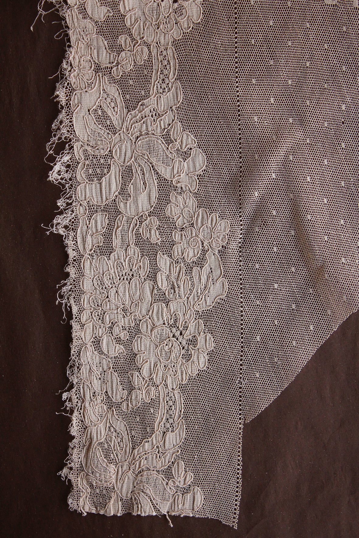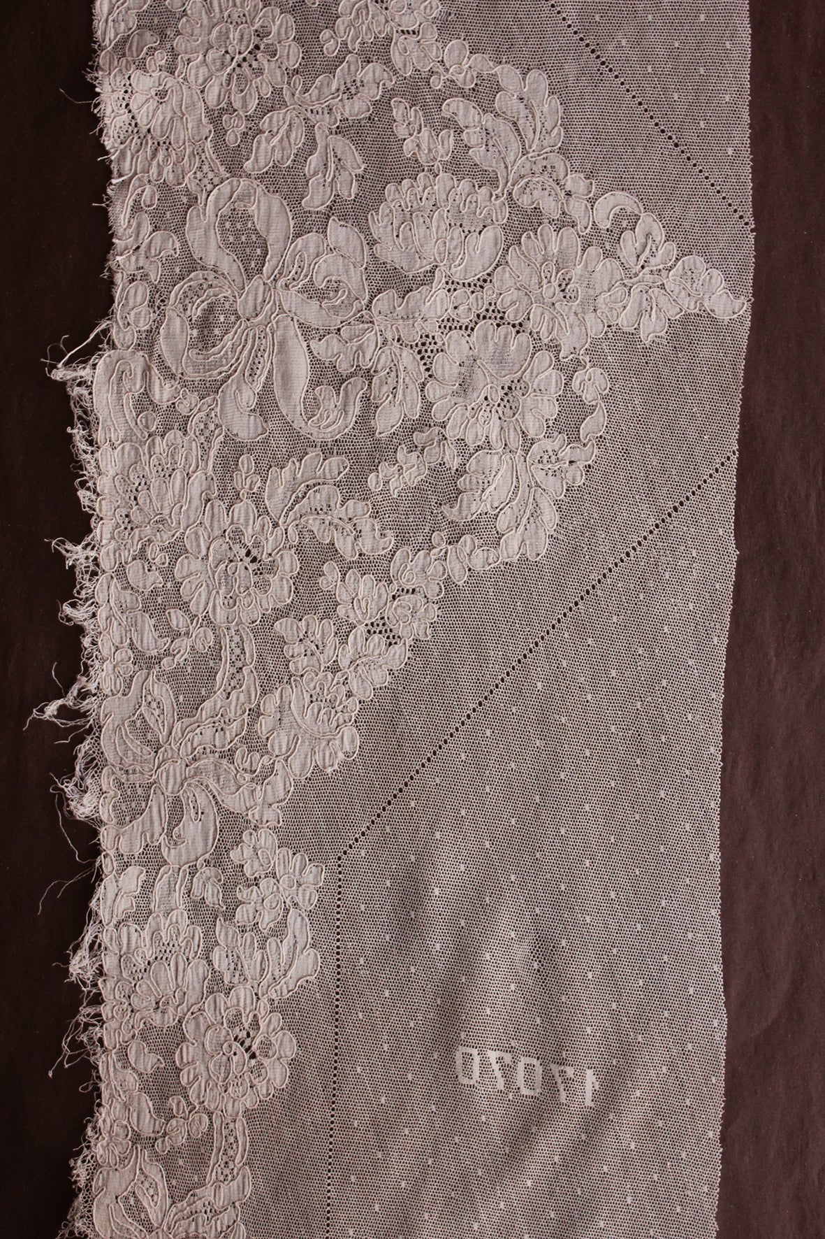 This particular piece consists of a large laced panel that is yet to be cut away from the netted ground. Just wonderful.