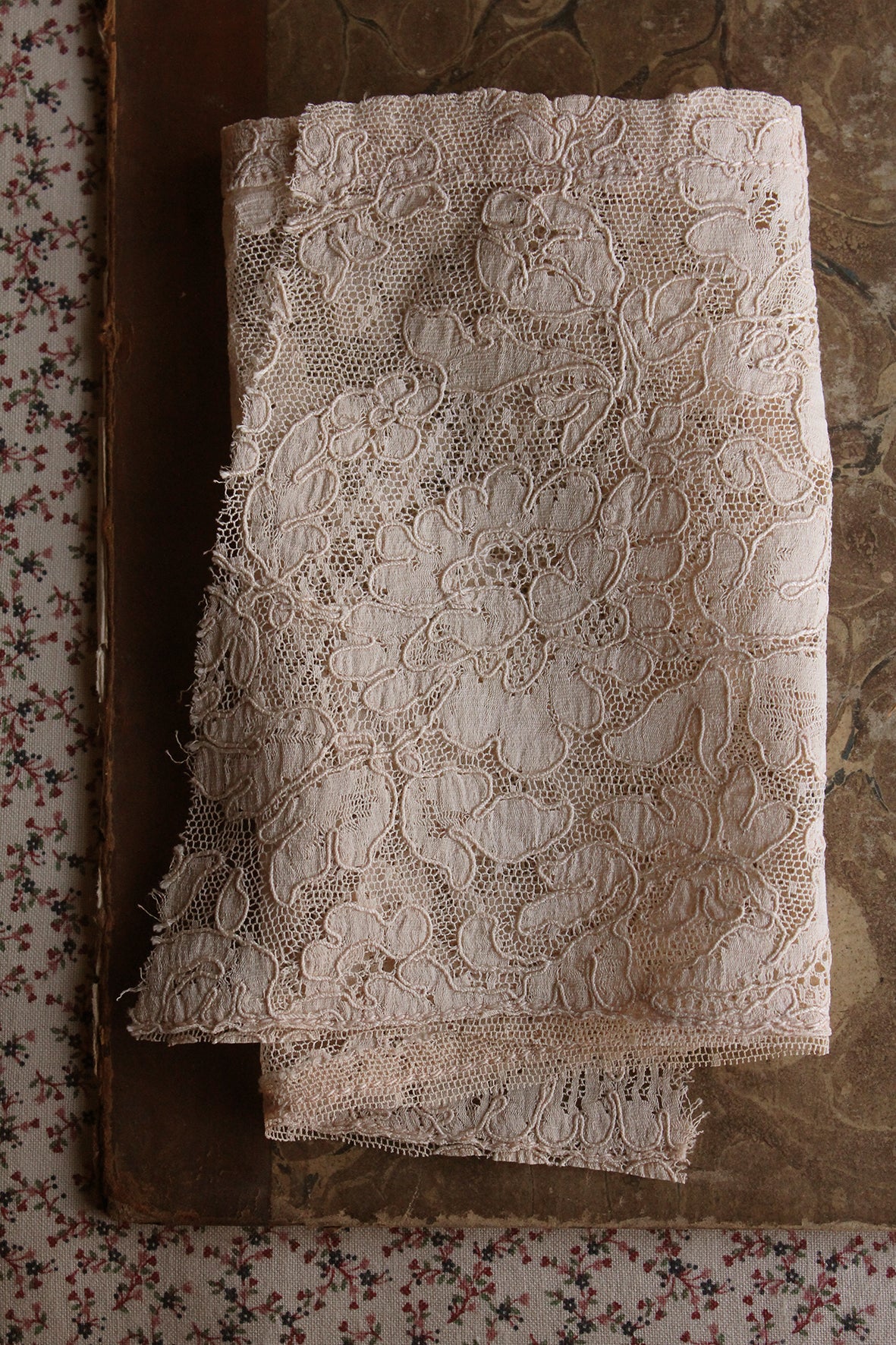 I have acquired a small collection of French lingerie lace from the 1920's possibly early 30's that was found all together in an old box that was originally from (what I assume) was the original atelier.