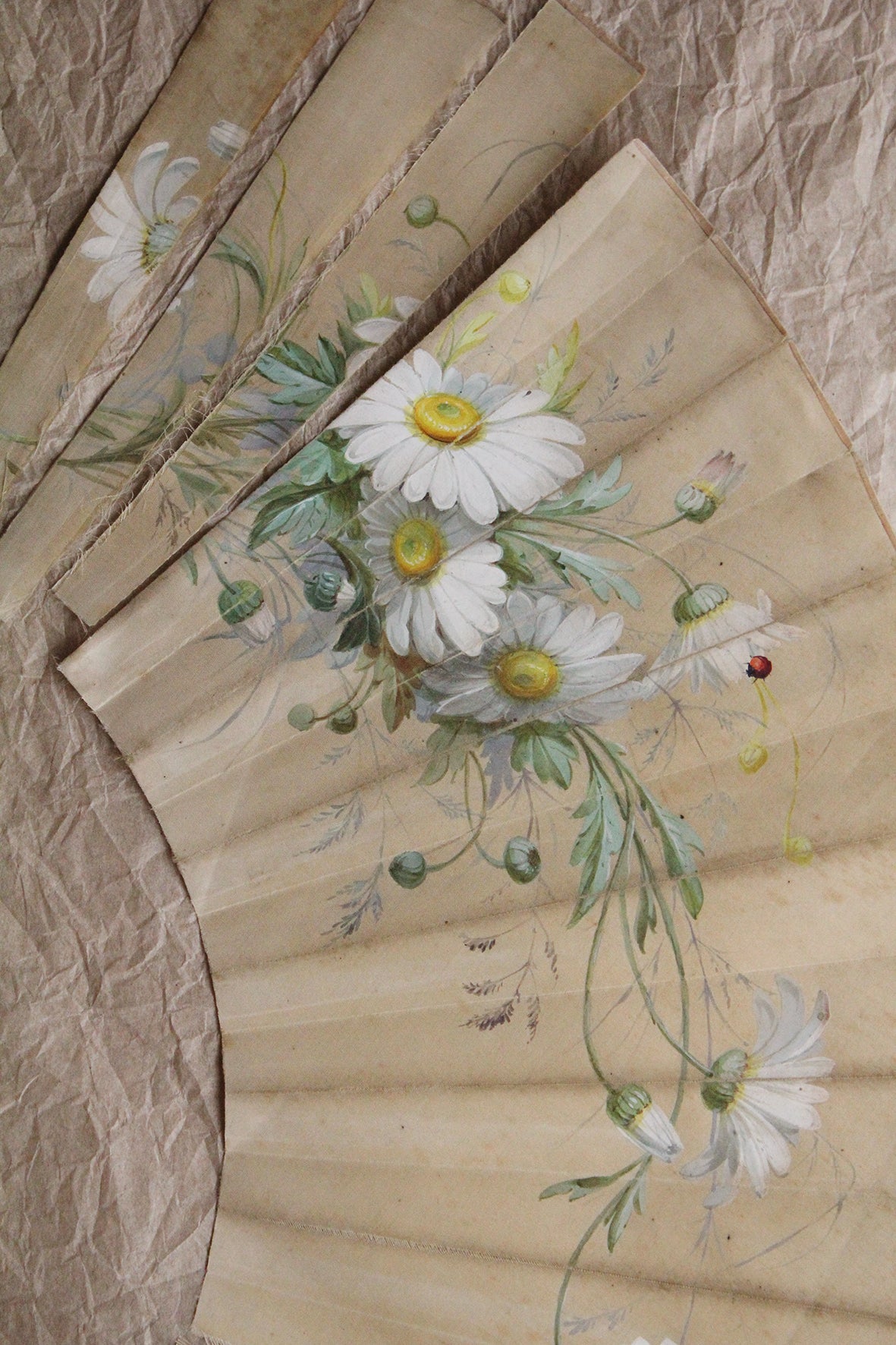 Beautiful fragments reclaimed from a hand painted silk fan.