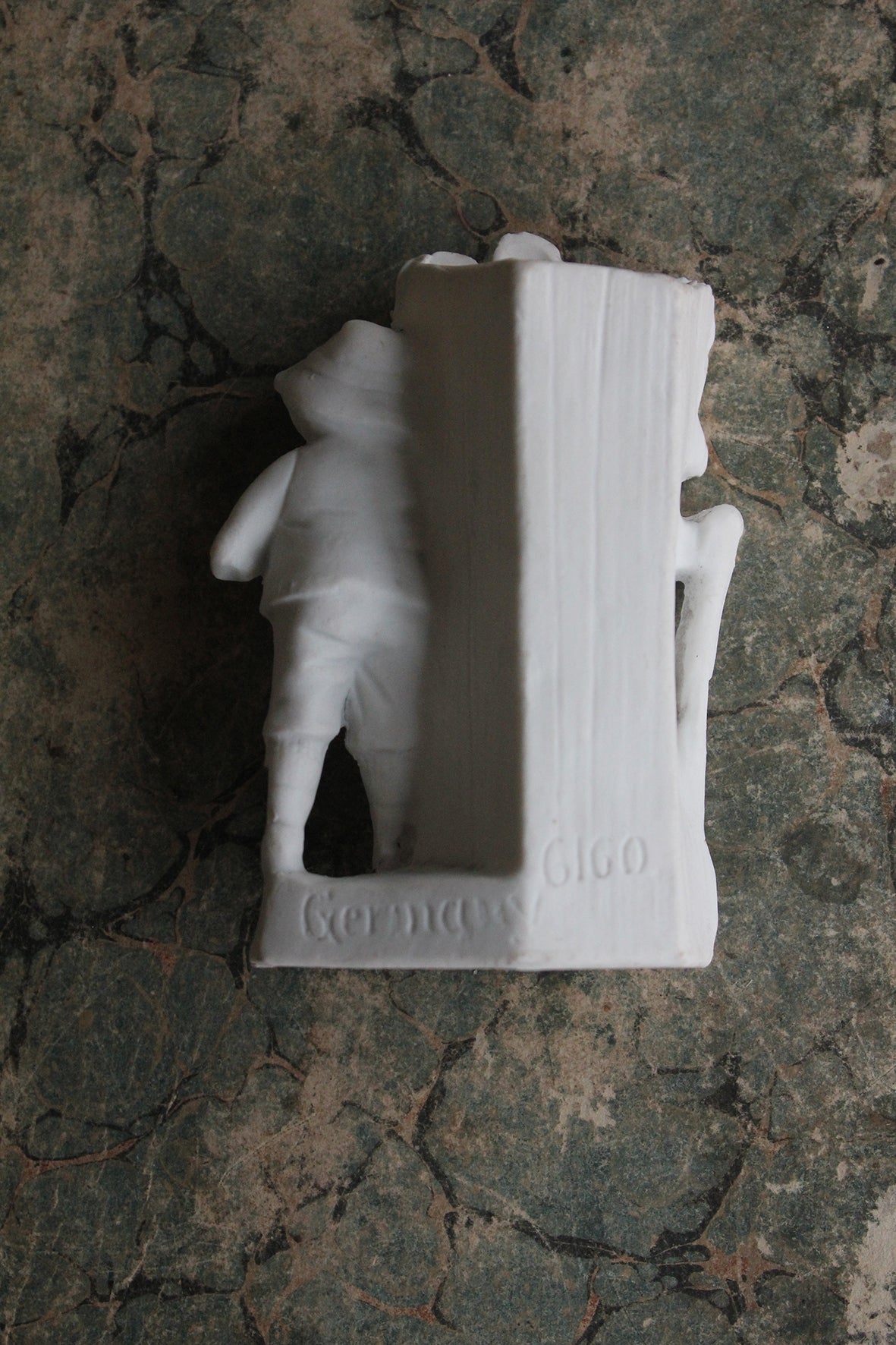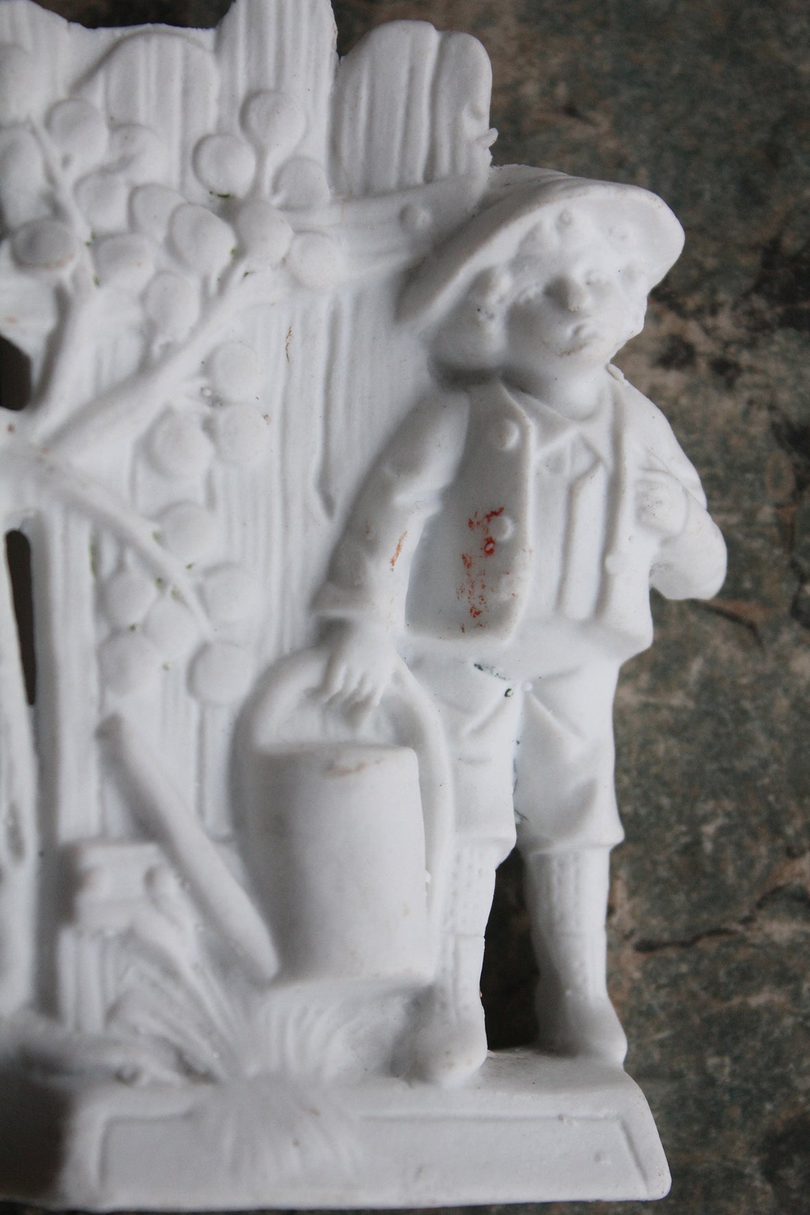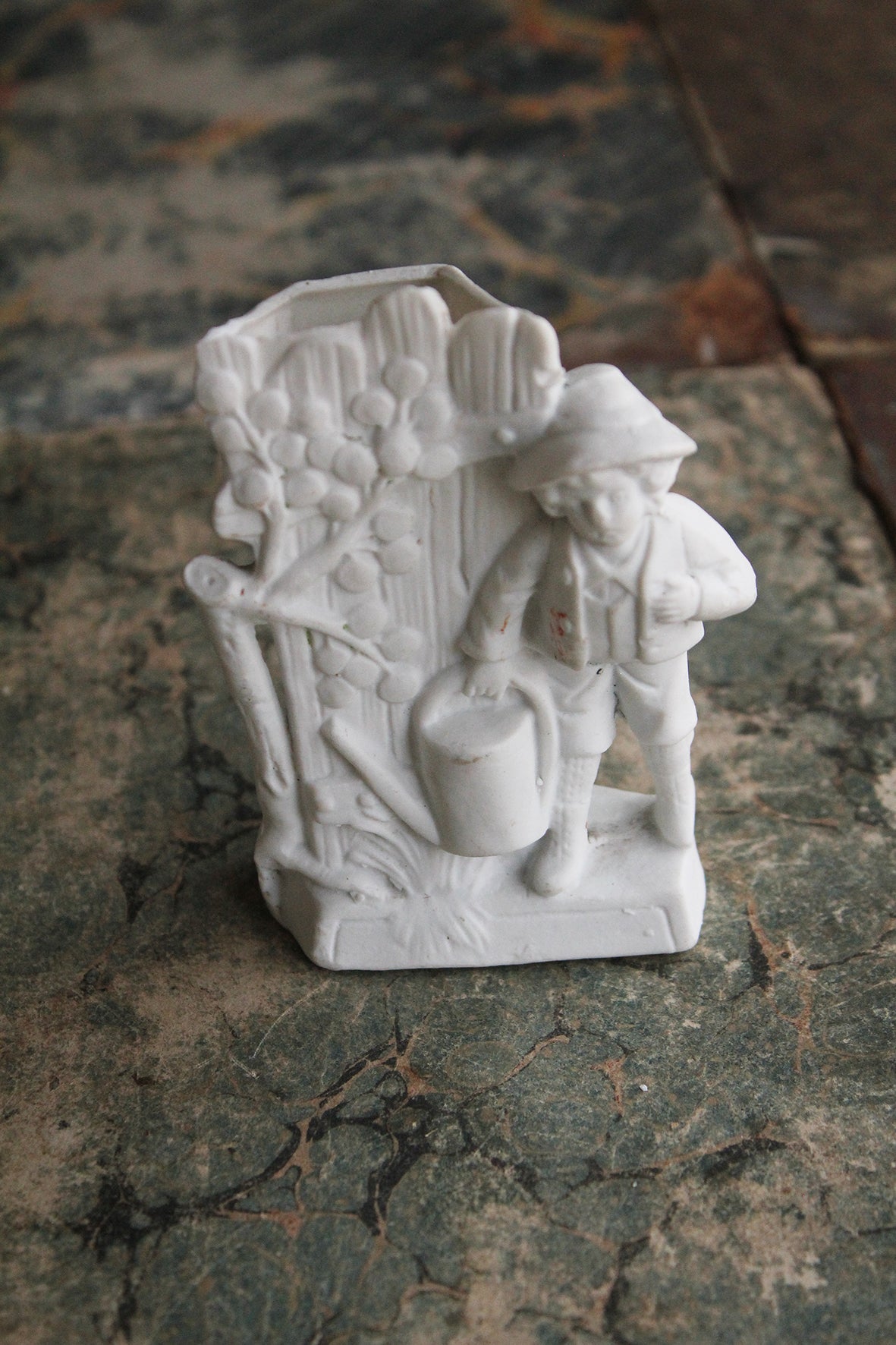 A lovely old Victorian bisque posy vase. The tree trunk near to the boat is the vase.