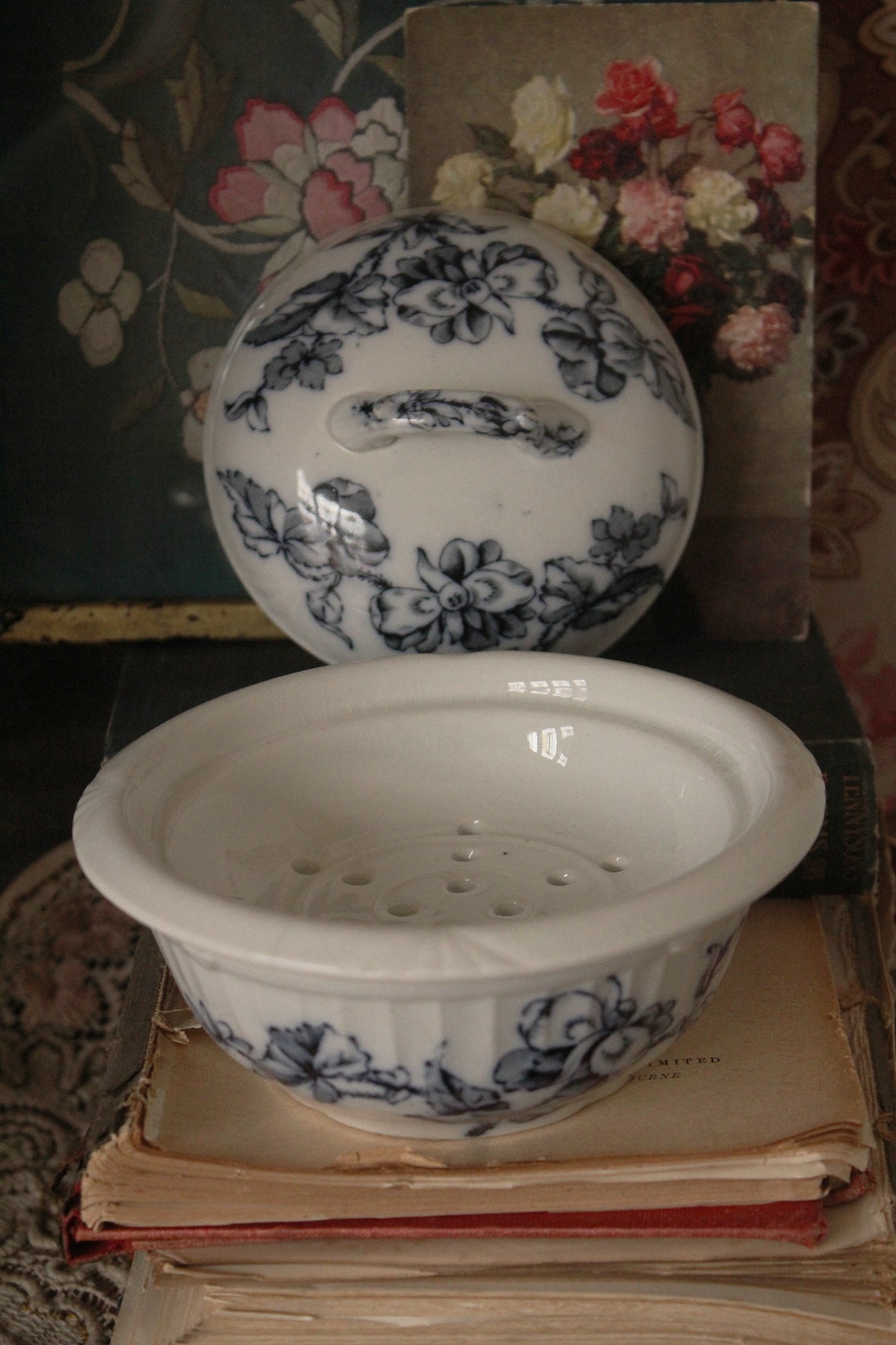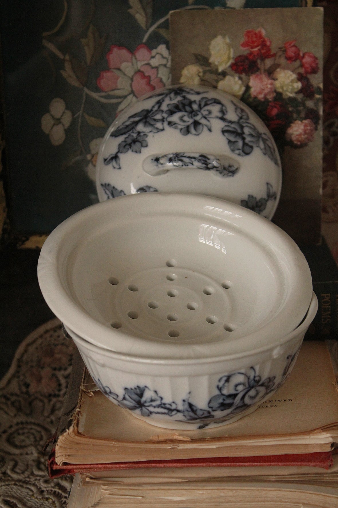 A very lovely old soap dish that has the lid, strainer and bowl. Rare to have a dish all complete with the three compartments. All in good condition.