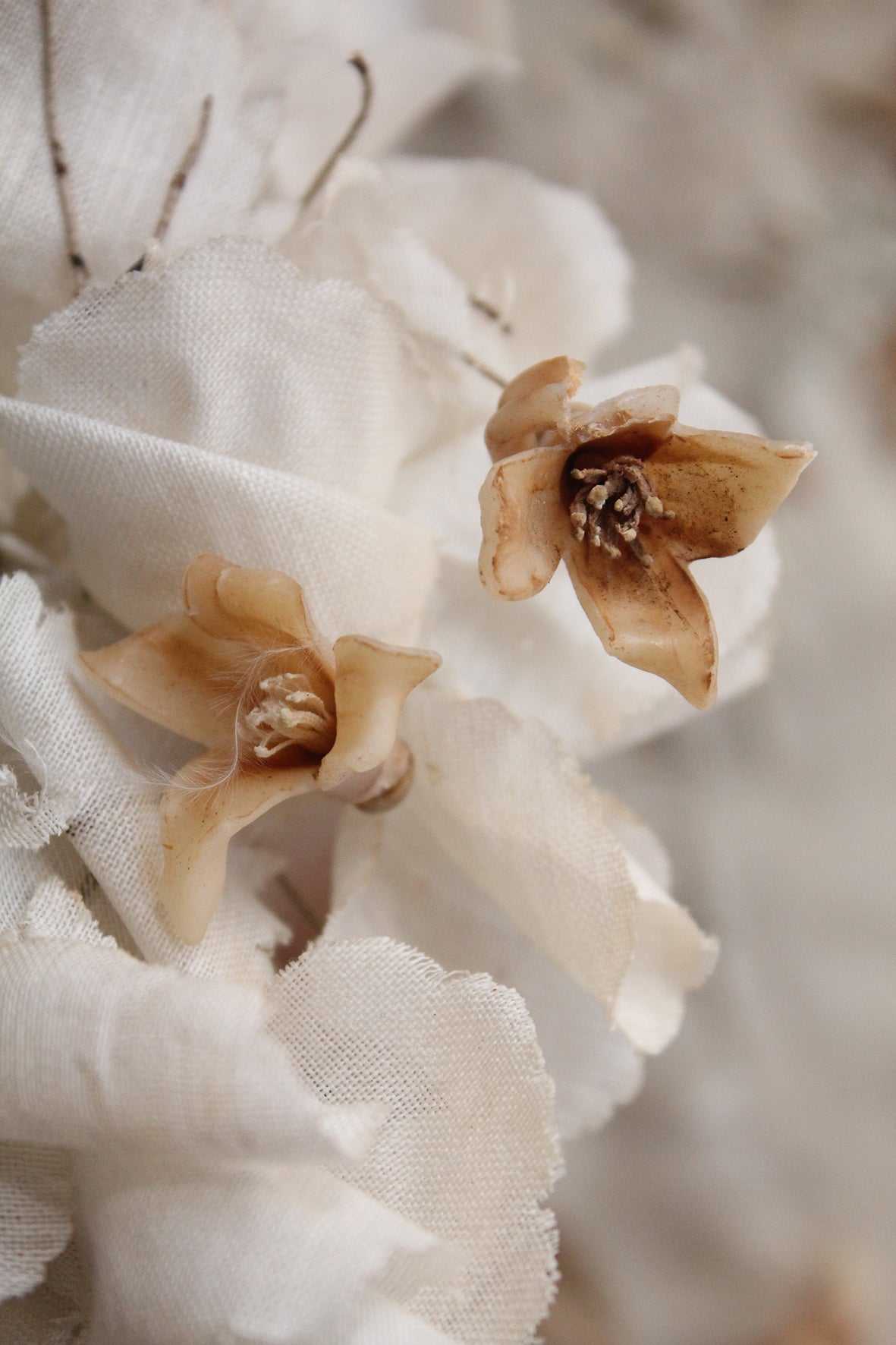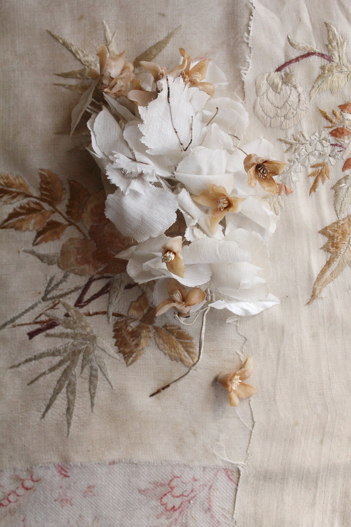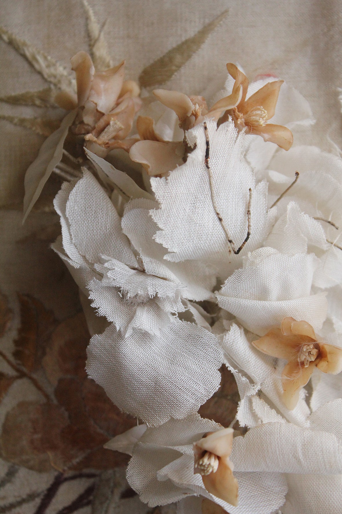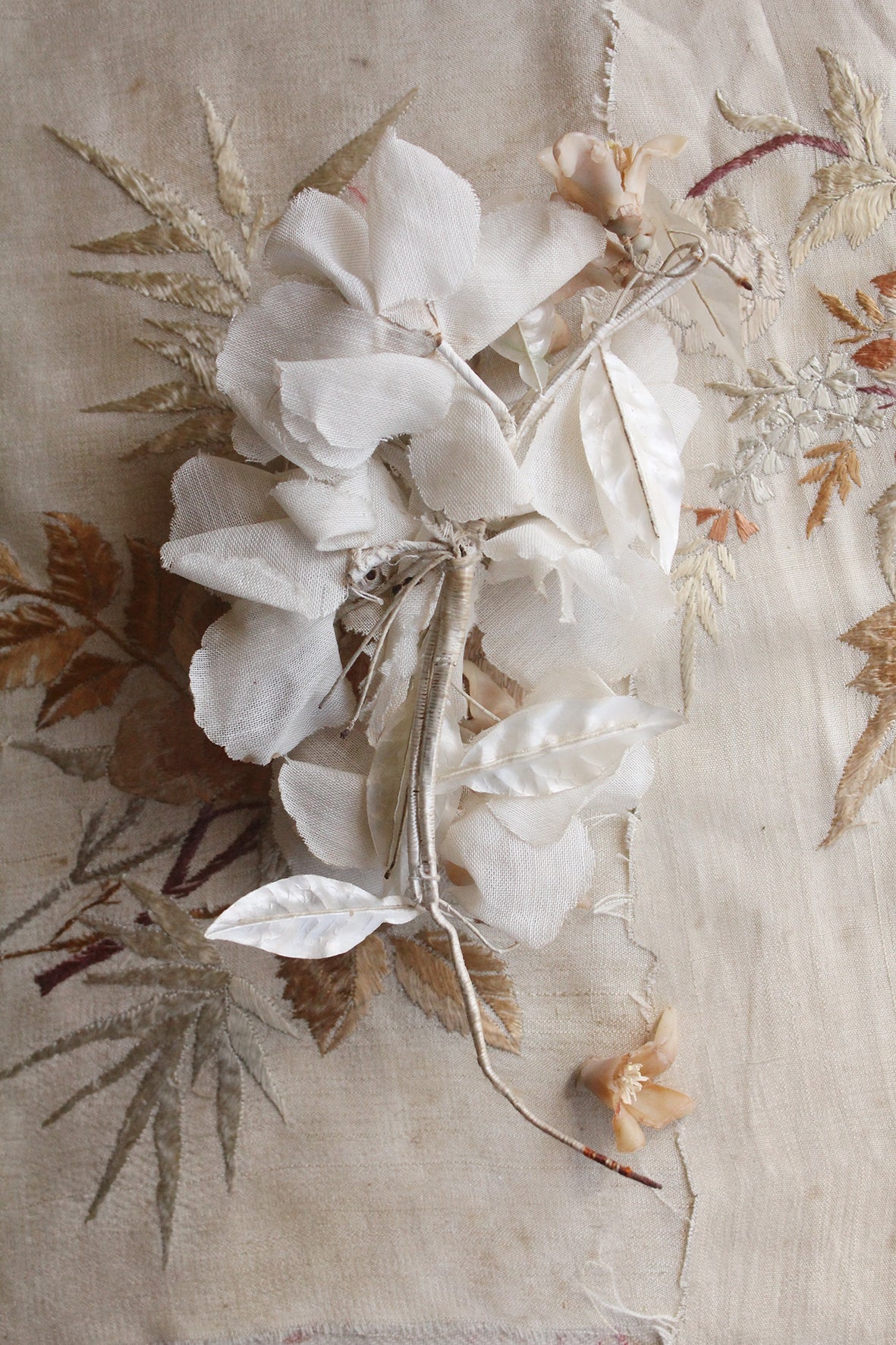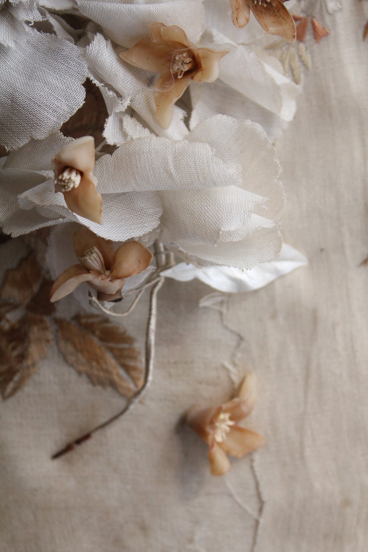 An exquisite floral corsage with waxed flowers, all beautifully detailed. Reclaimed from an old French Marriage Dome.