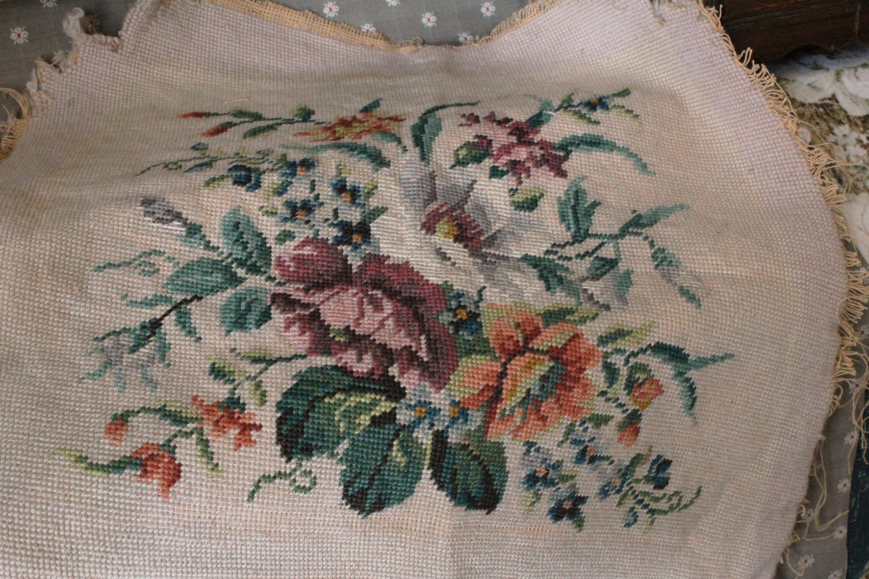 Exquisite Old Floral Reclaimed Needlepoint - No.1